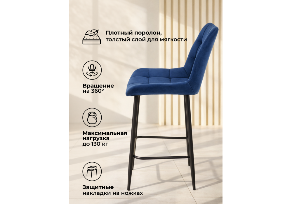 Барный стул поворотный Woodville Челси 360 синий (zd 798) / черный np 632580 в Рязани