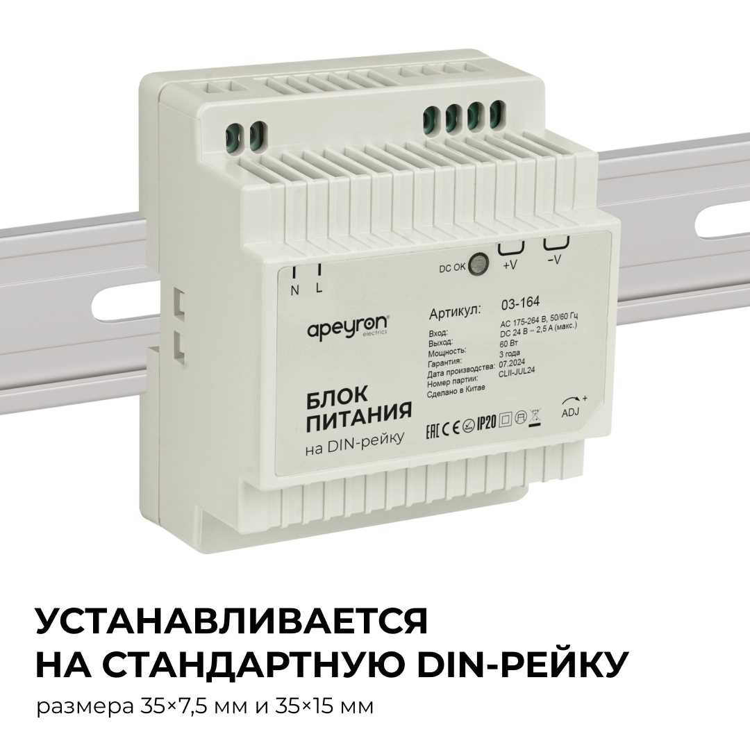 Купить "Блок питания на DIN рейку Apeyron 03-164"