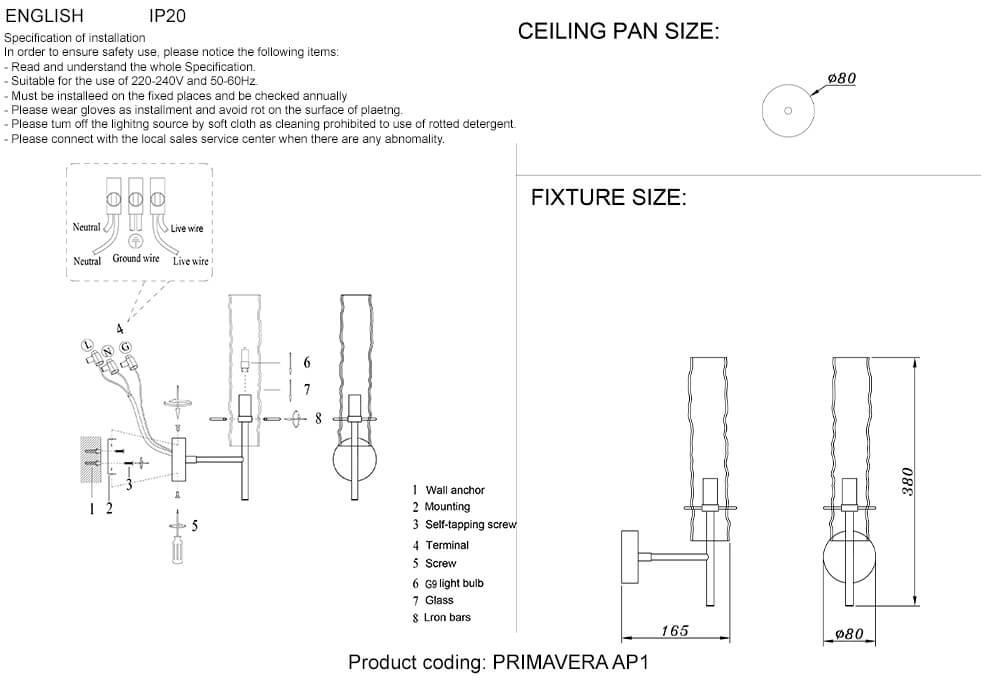 - Направление плафонов: Плафон вверх