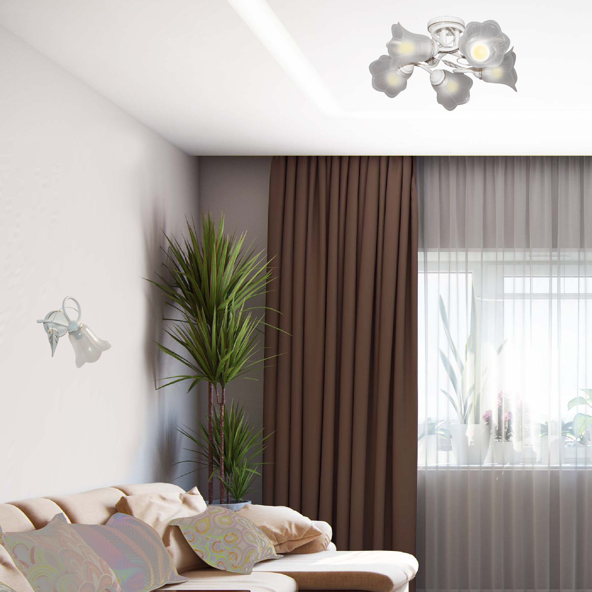 - Декор плафона: Цветы