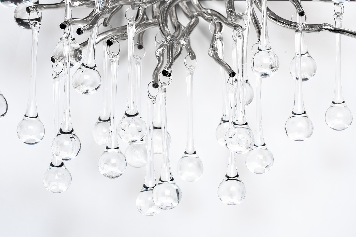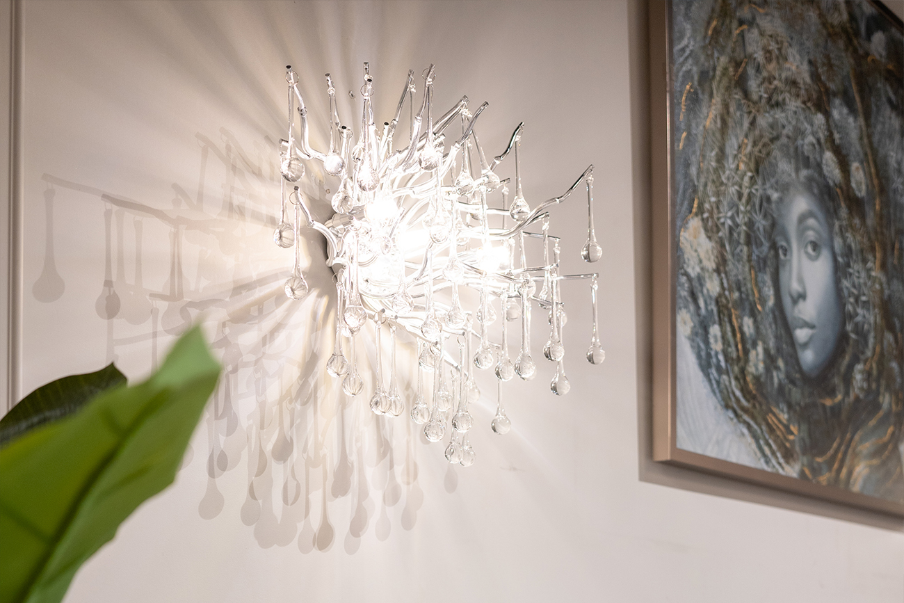 Правильно расставить акценты и создать роскошную атмосферу в помещении Вам поможет бра «Капли» в стиле современного ар-деко. Его дизайнерская особенность – наличие большого количества стеклянных элементов в форме капель. Они не только придают светильнику шарм, но и создают неповторимую игру света. Своим изяществом дизайнерское бра обязано и тонким металлическим опорам для стеклянных «капель». Им мастера придали форму веток, которые гармонично дополняют композицию. Благодаря продуманному дизайну модель гармонично впишется как в современное, так и в классическое оформление помещения. Декоративное бра предназначено для горизонтальной установки на стену.