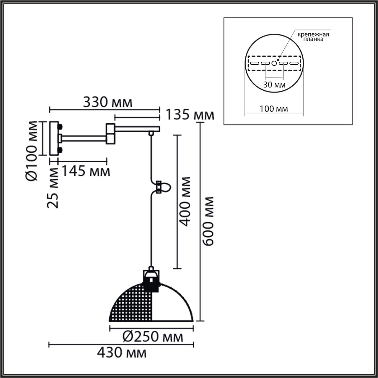 - Форма плафона: Полукруг