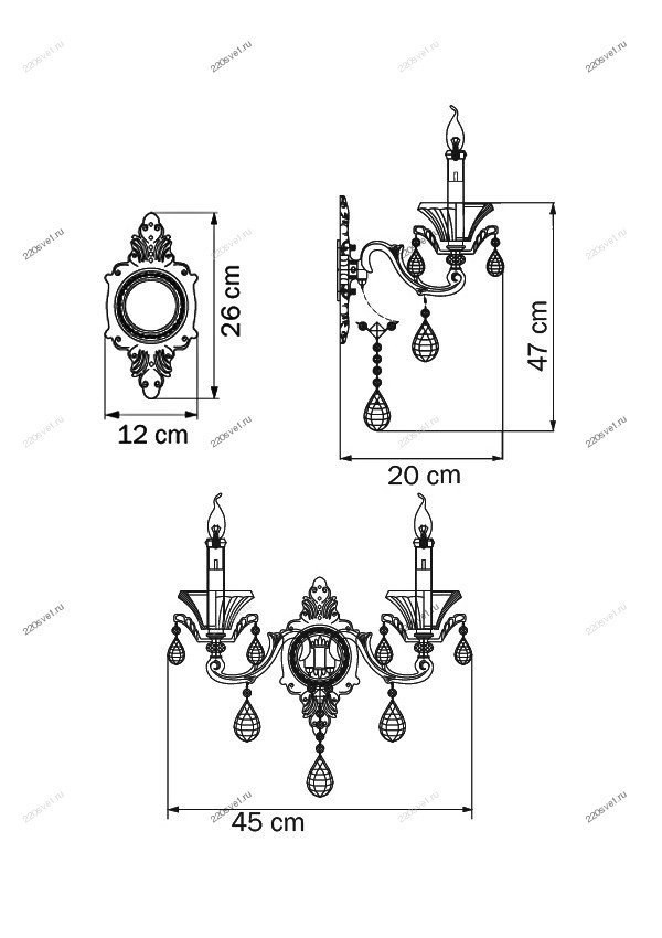 - Форма плафона: Без плафона, Свеча