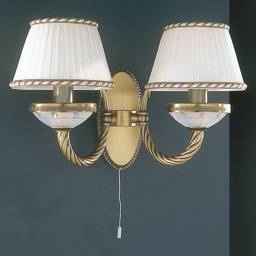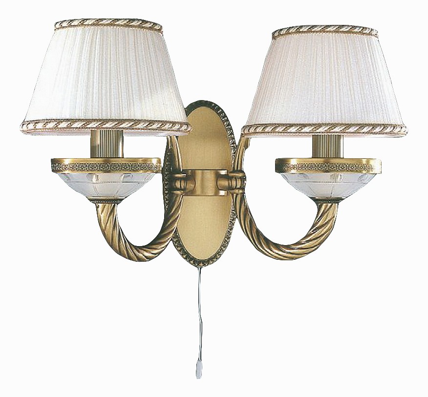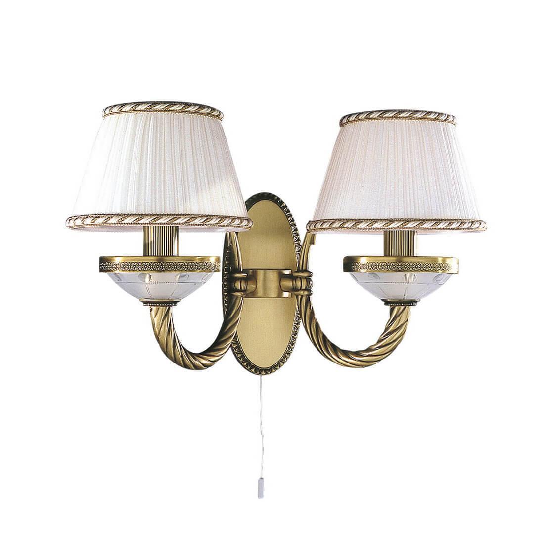 Бра Reccagni Angelo A 4660/2 Итальянского производсва – лучшее соотношение цена-качество. Этот светильник Классического стиля хорошо подойдет Для гостиной и придаст помещению мягкий и приятный свет. Плафоны белые из ткани. Арматура бронза из металла. Кол-во ламп - 2шт. Общая мощность 120W