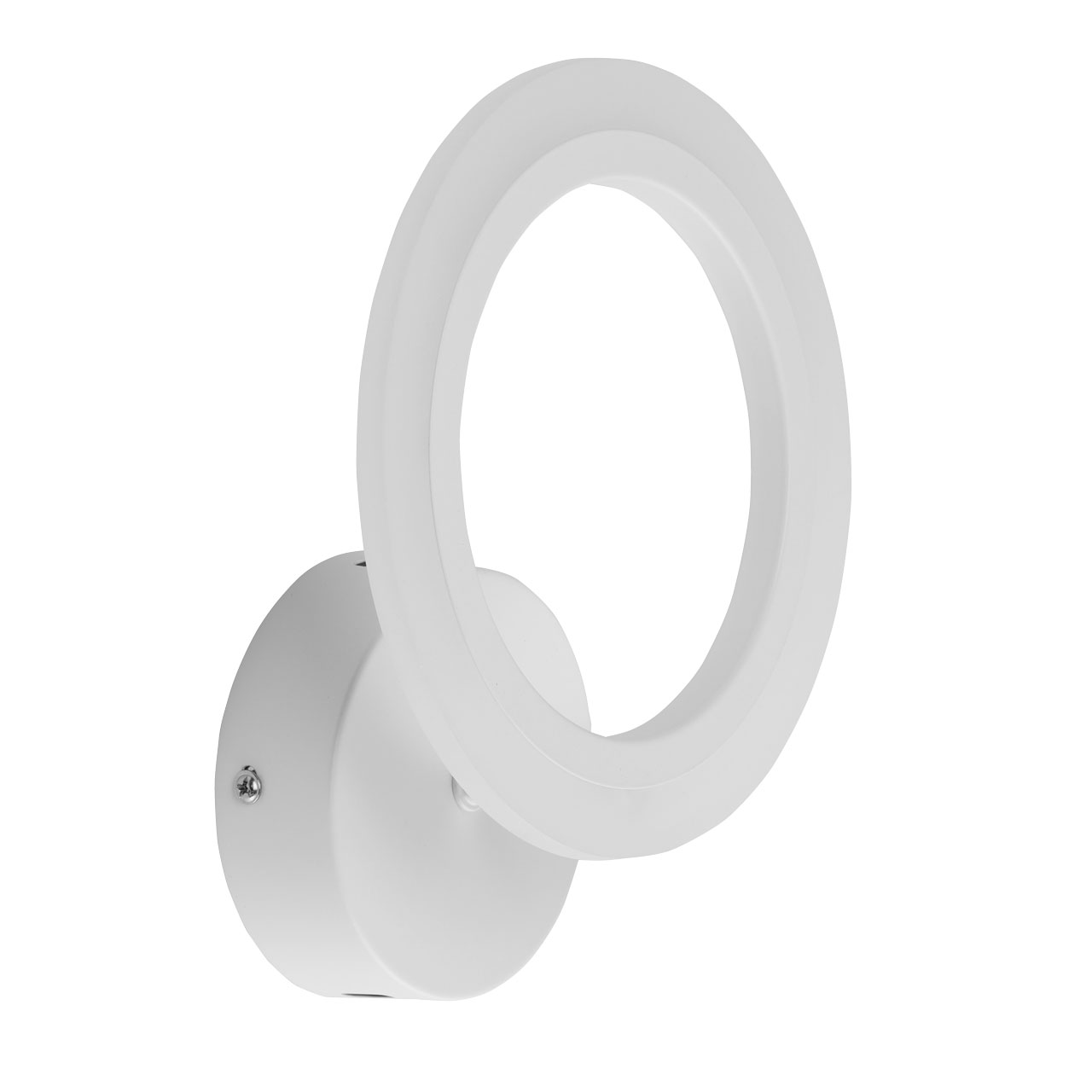 Металлическое основание настенного бра окрашено в белый цвет. Корпус плафона выполнен из сплава алюминия с цинком и окрашен в цвет основания. Светодиодные источники света закрыты белым матовым акрилом.