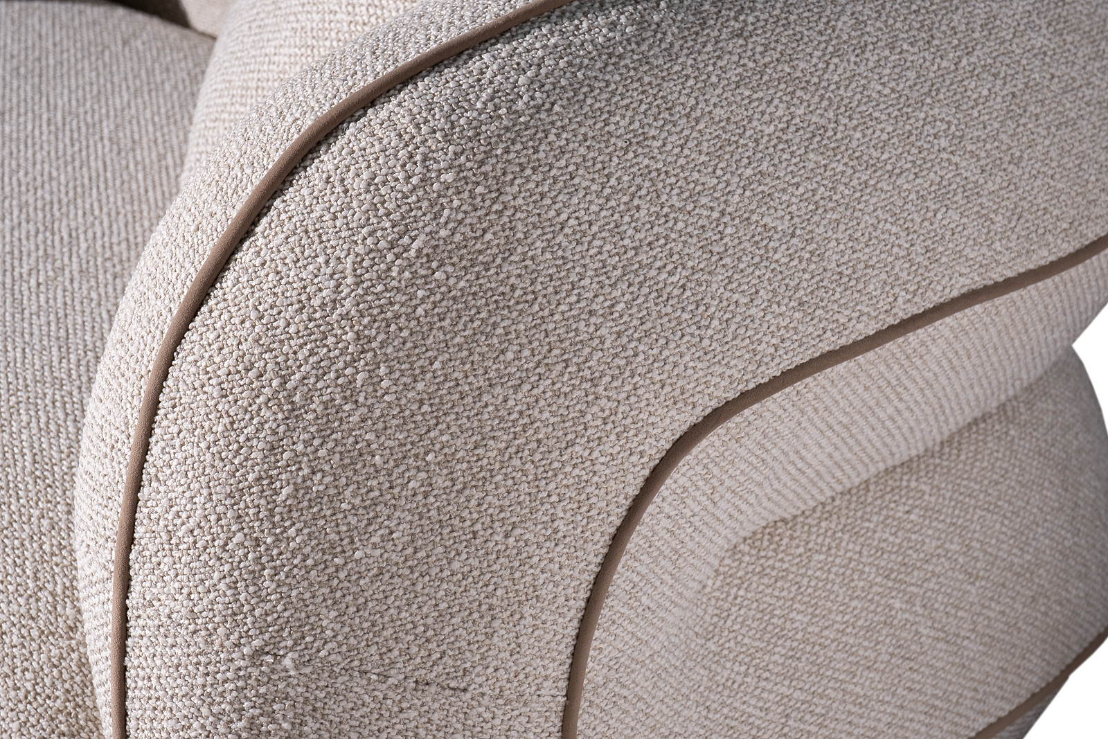 Диван Amelia трёхместный — воплощение уюта и современной элегантности в светлом исполнении. Этот светлый диван букле привлекает мягкой фактурой обивки и округлыми, плавными формами, которые создают ощущение комфорта и визуального спокойствия. Бежевый кант деликатно подчёркивает силуэт модели, добавляя образу графичности и аккуратного акцента. Дизайнерский диван Amelia гармонично вписывается в интерьеры в стиле modern luxury, современная классика и soft minimalism, становясь центральным элементом гостиной и пространством для отдыха каждый день. В комплект входят две подушки 55*55см в ткани обивки и одна велюровая подушка 40*60см с декоративным ремнем. Габариты сиденья: ширина – 197см, глубина – 72см, высота от пола – 43см.