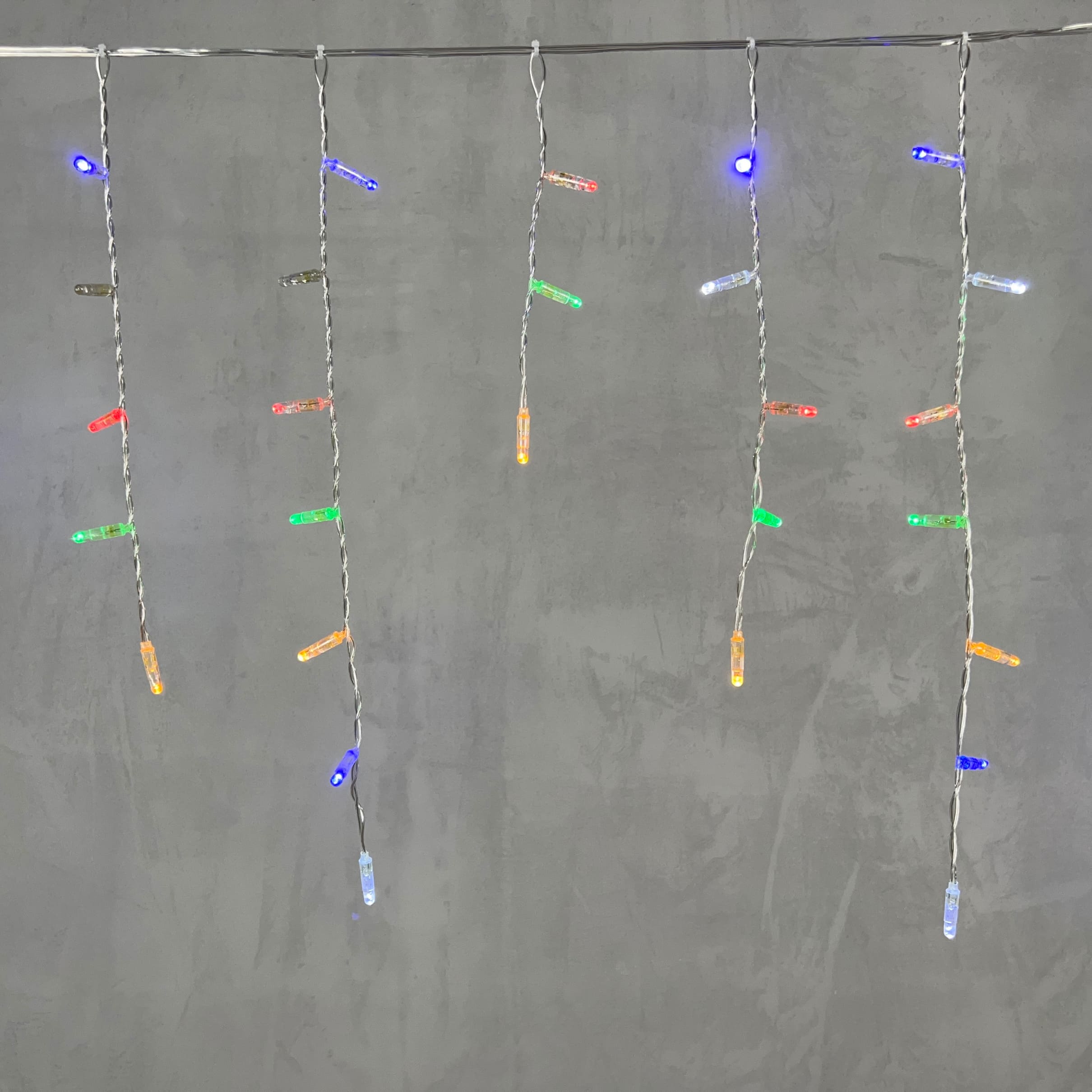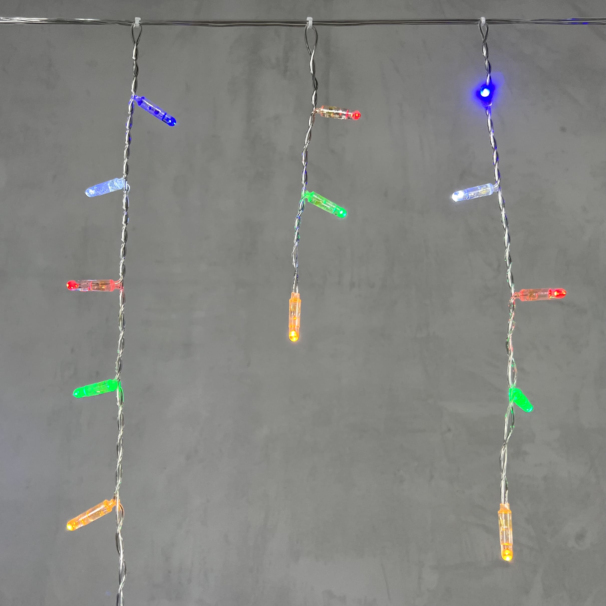 Купить "Гирлянда Бахрома с Калпочком 3,1 x 0,5 м Разноцветная с Мерцанием Белого Диода 220В, 120 LED, Провод Прозрачный Провод ПВХ, IP65 LTC PIL120BLWCAP-10-2M"