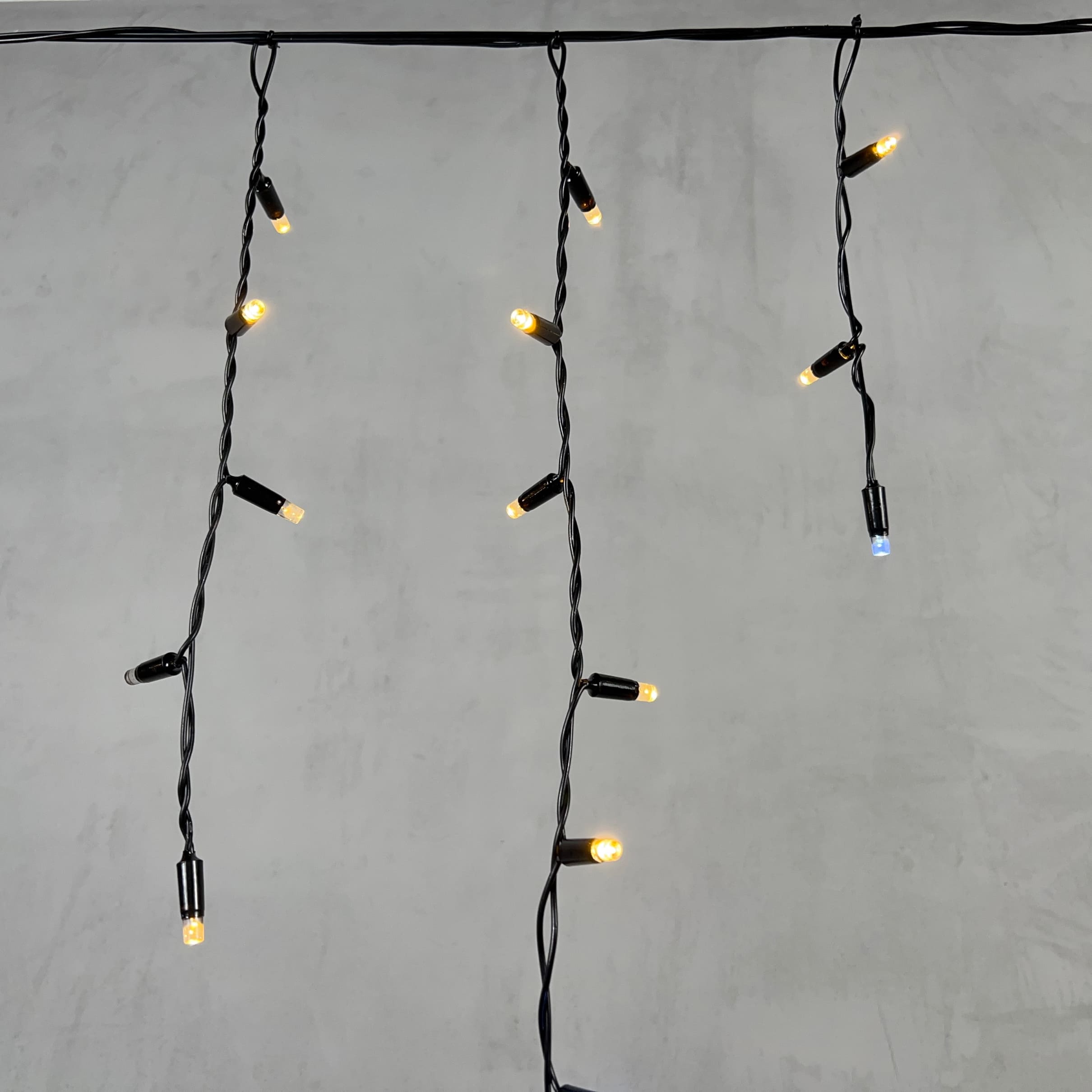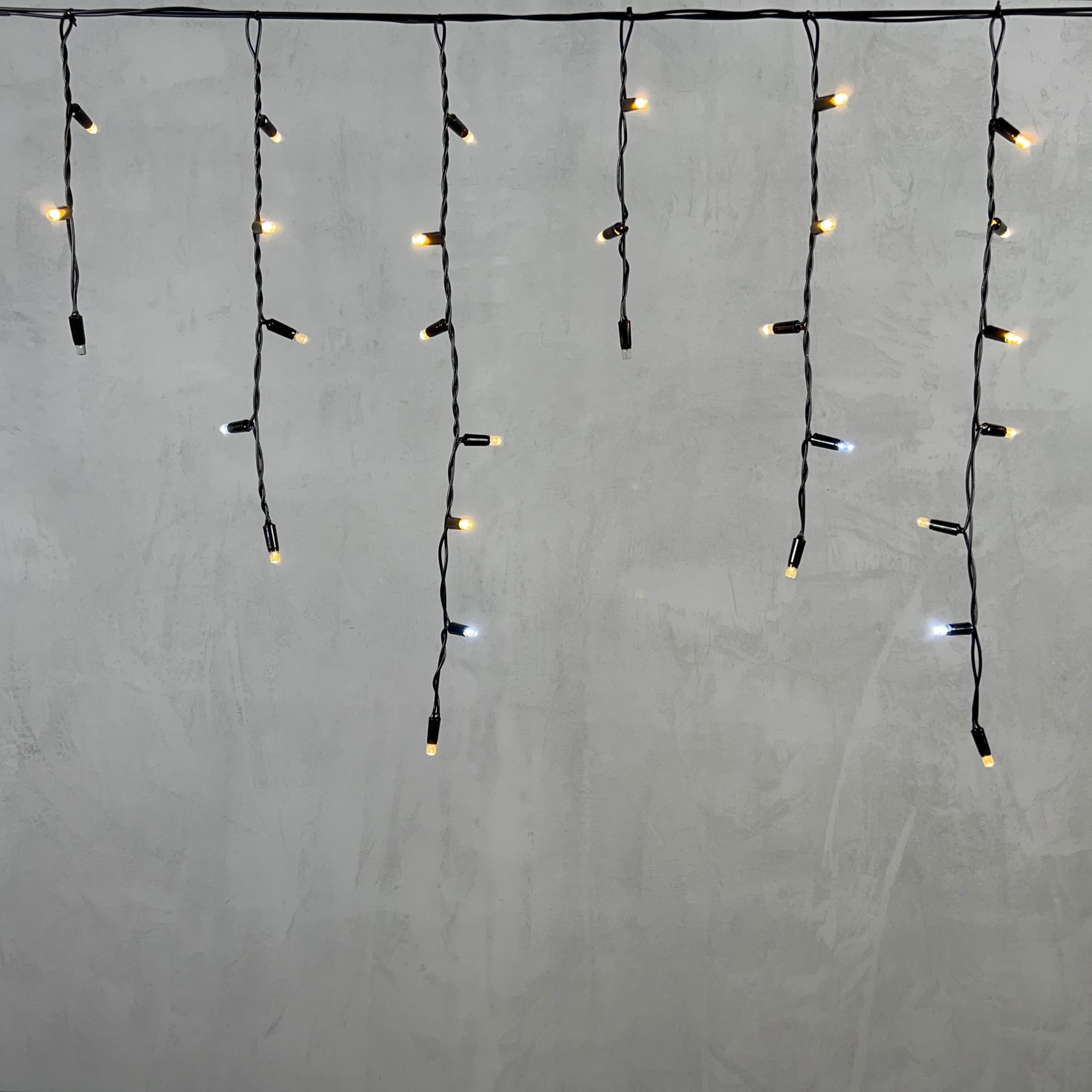 Купить "Гирлянда Бахрома с Колпачком 3,1 x 0,5 м Тепло-Белая с Мерцанием Белого Диода 220В, 120 LED, Провод Черный ПВХ, IP65 LTC PIL120BLWCAP-11-2WW"