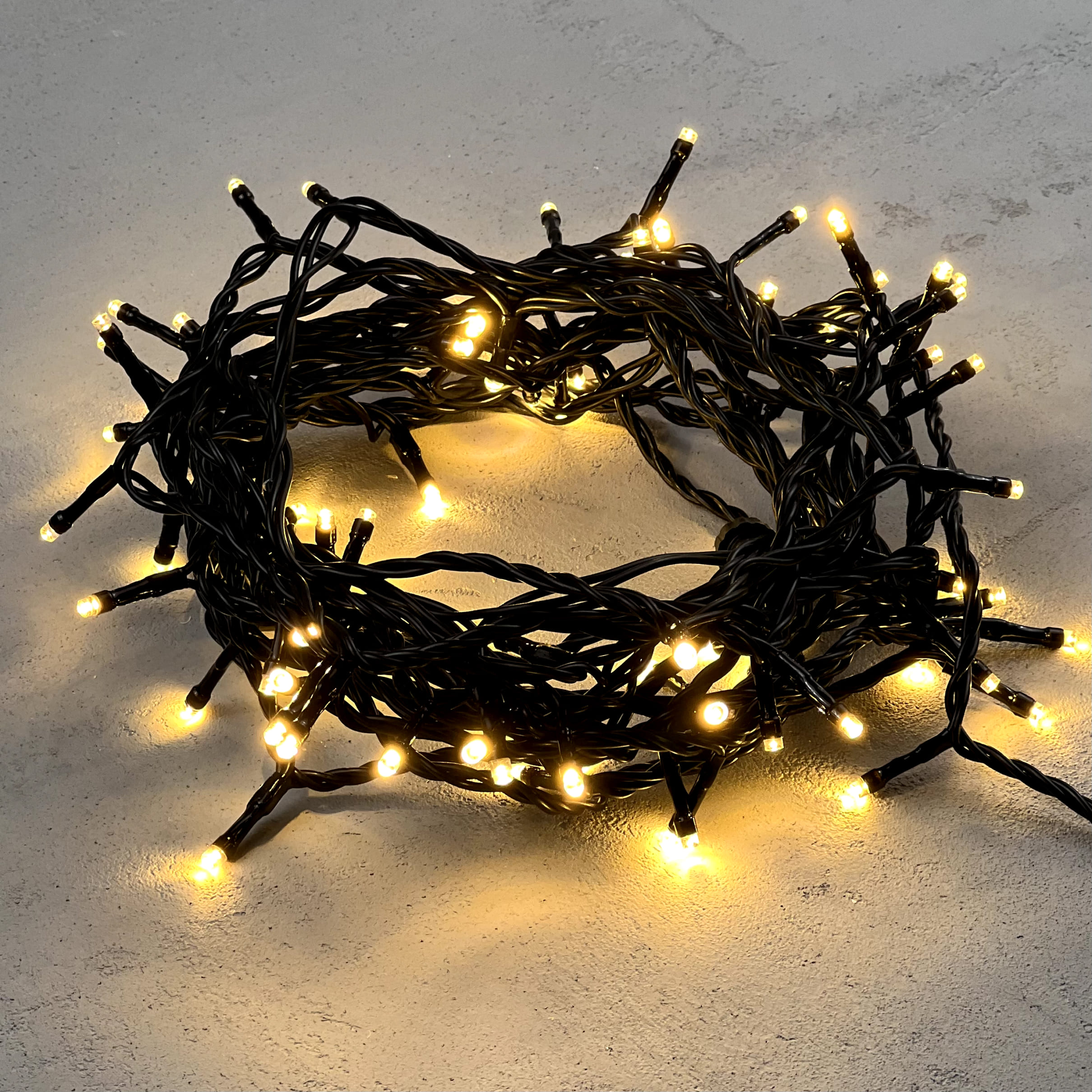 Гирлянда Нить 10м Тепло-Белая 24В, 100 LED, Провод Черный ПВХ, IP54 LTC PST100-11-1WW в Рязани