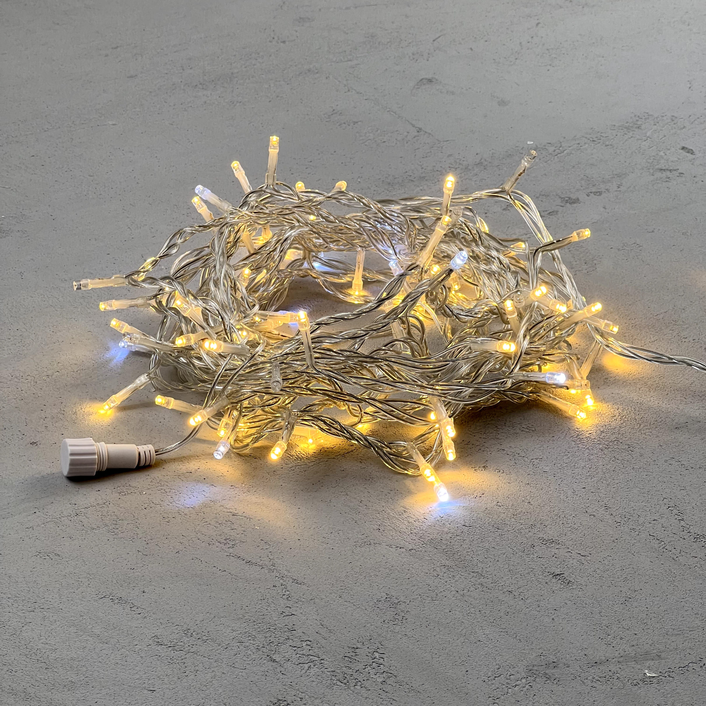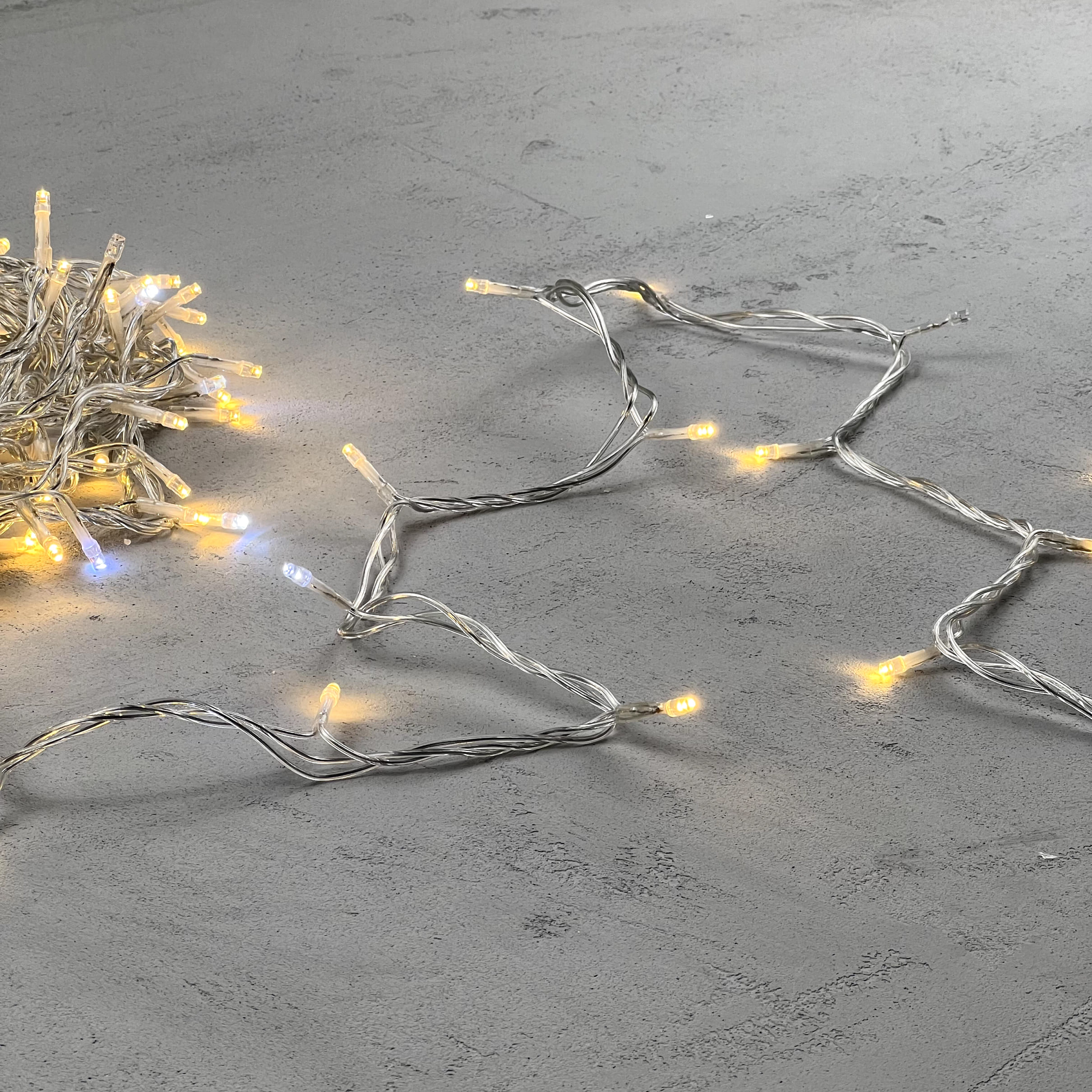 Гирлянда Нить 10м Тепло-Белая с Мерцанием Белого Диода 24В, 100 LED, Провод Прозрачный ПВХ, IP54 LTC PST100BLW-10-1WW в Рязани