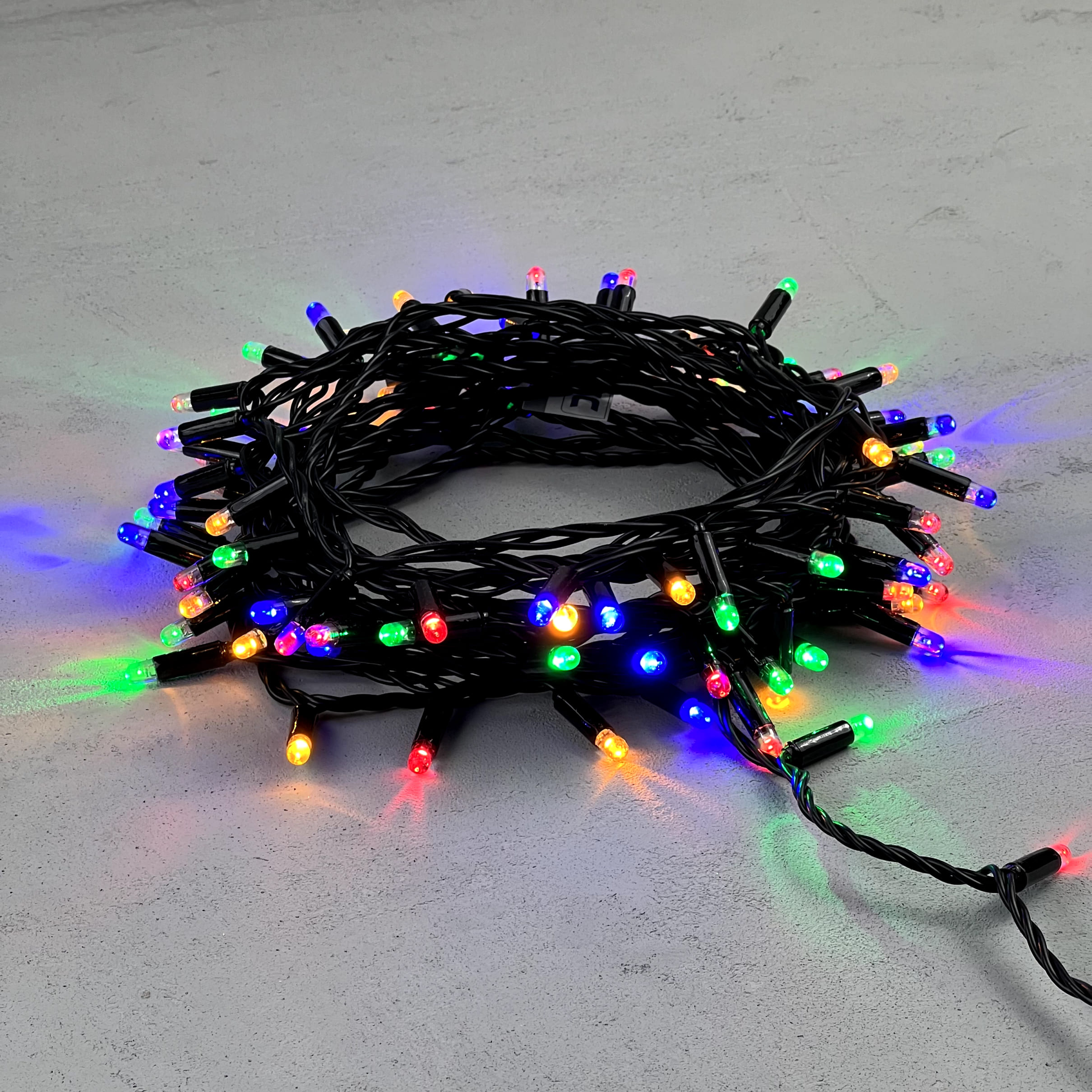 Купить "Гирлянда Нить с Колпачком 10м Разноцветная 24В, 100 LED, Провод Черный ПВХ, IP65 LTC PST100CAP-11-1M"