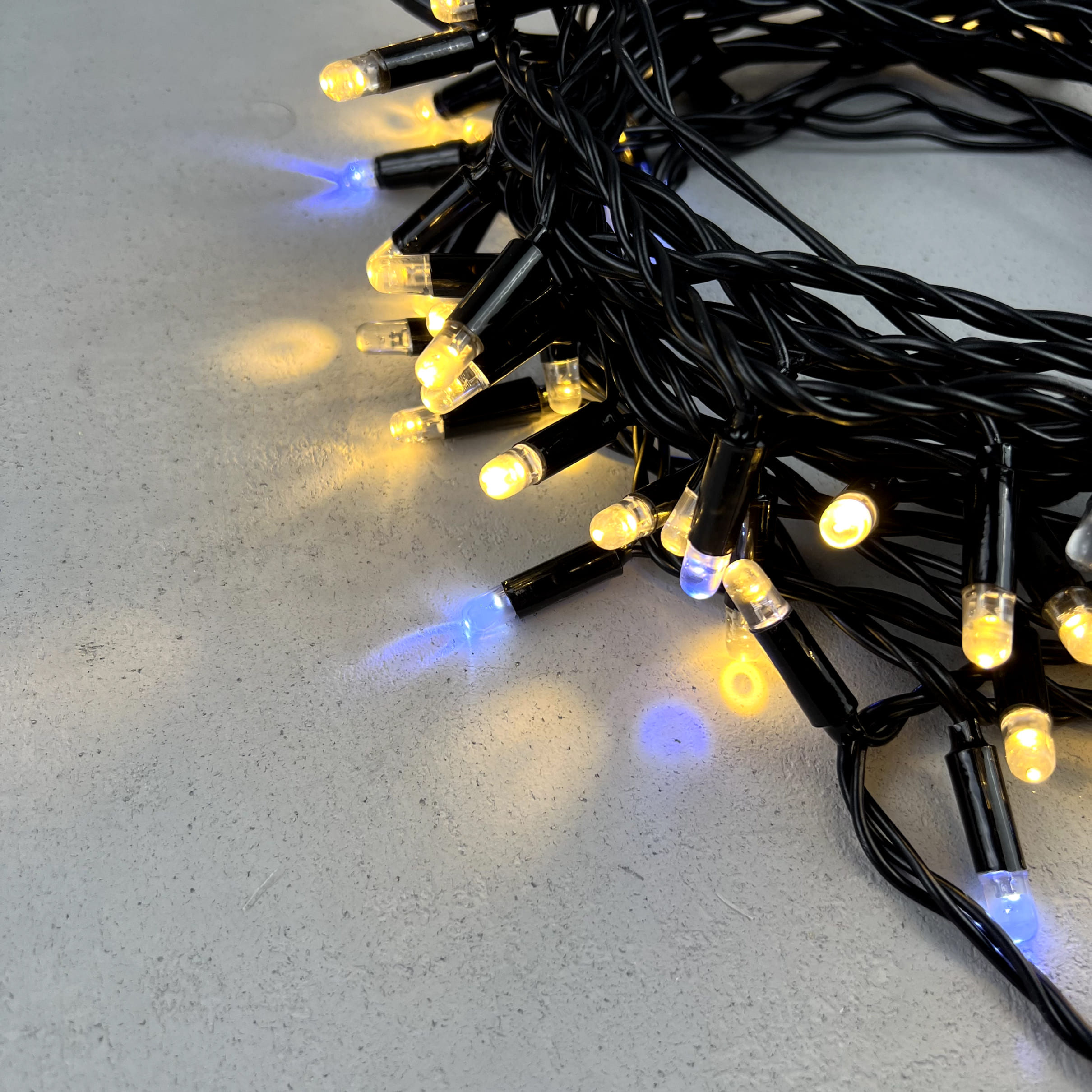 Купить "Гирлянда Нить с Колпачком 10м Тепло-Белая с Мерцанием Белого Диода 220В, 100 LED, Провод Черный ПВХ, IP65 LTC PST100BLWCAP-11-2WW"