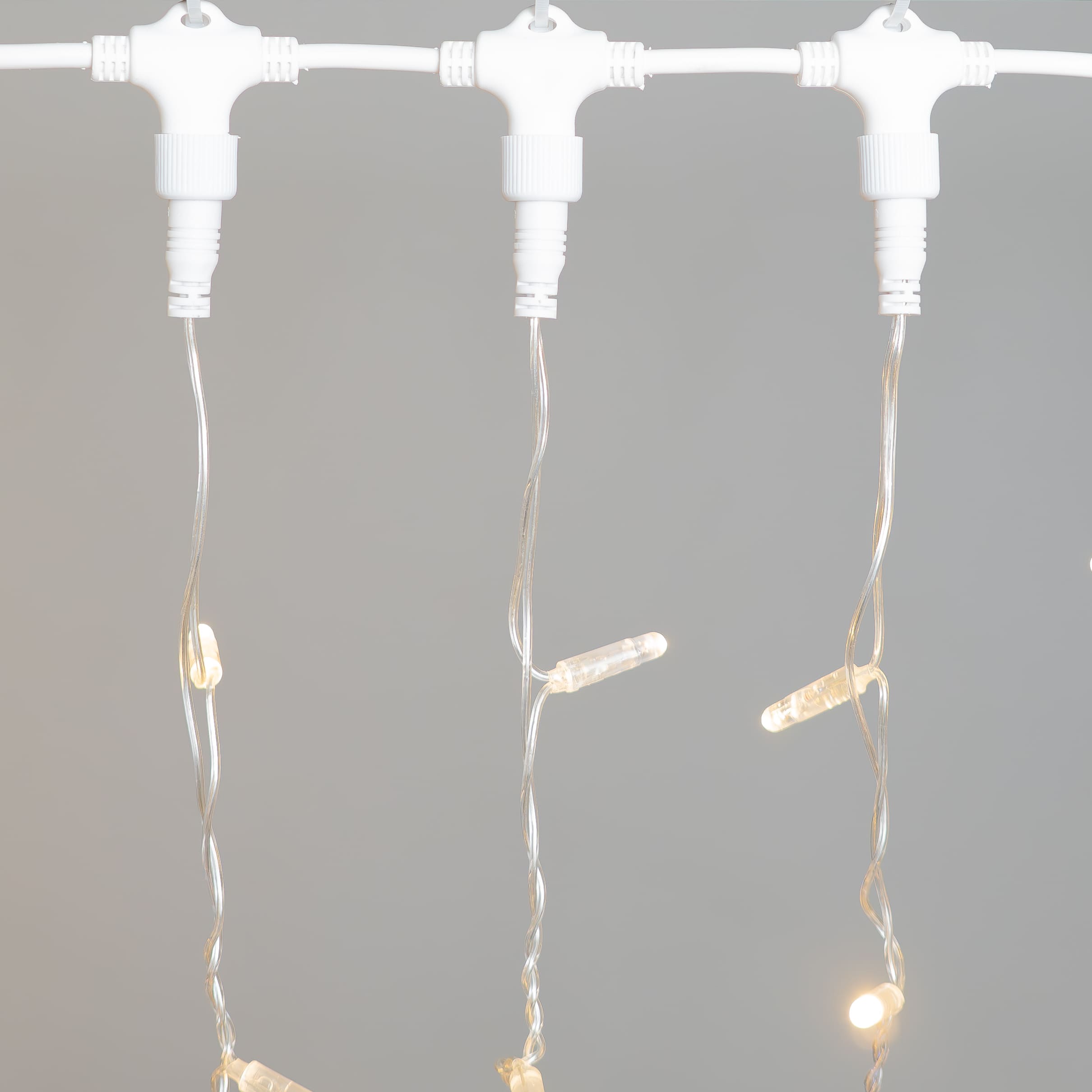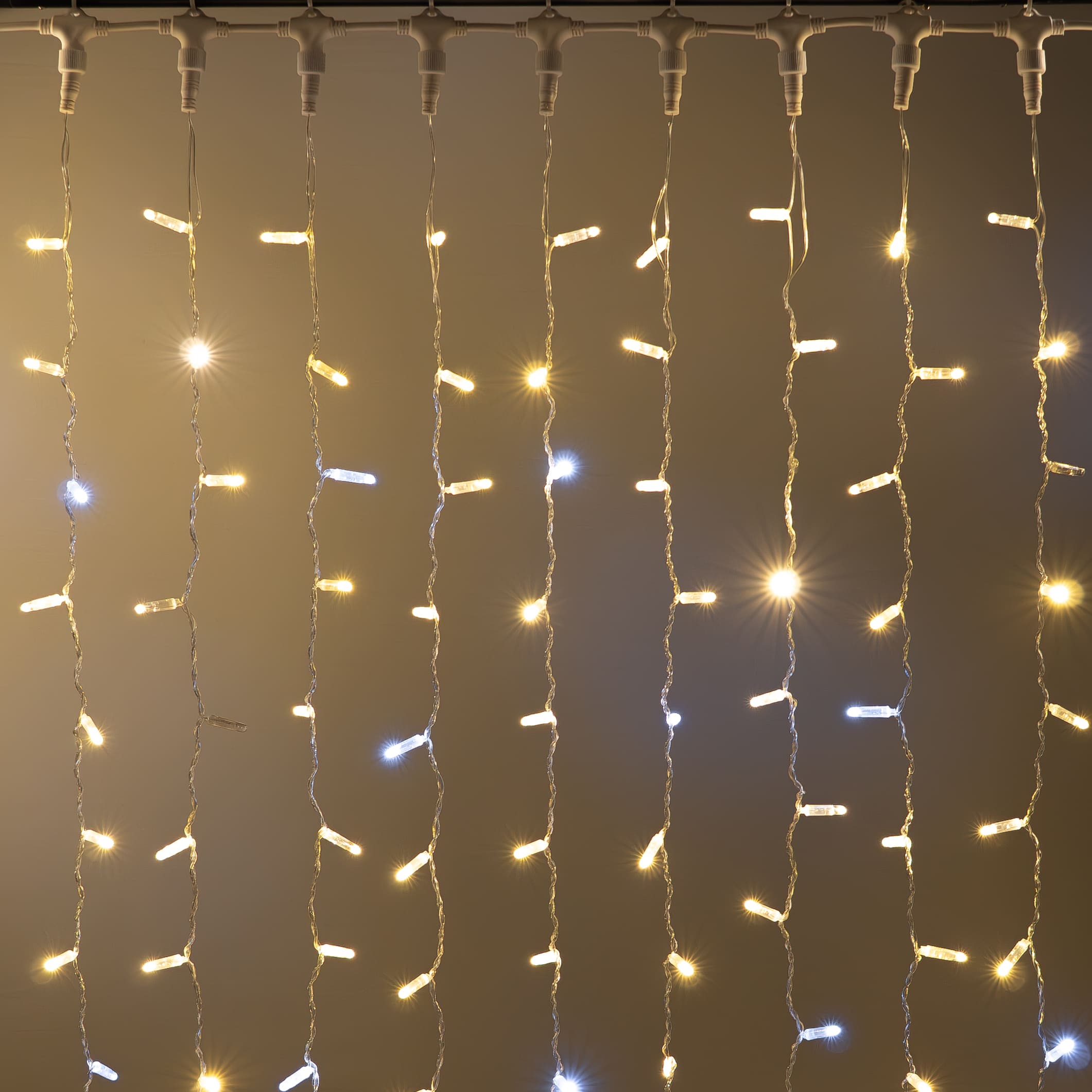 Купить "Гирлянда Занавес с Колпачком 2 x 3 м Тепло-Белый с Мерцанием Белого Диода 220В, 600 LED, Провод Прозрачный ПВХ, IP65 LTC PCL602BLWCAP-10-2WW"