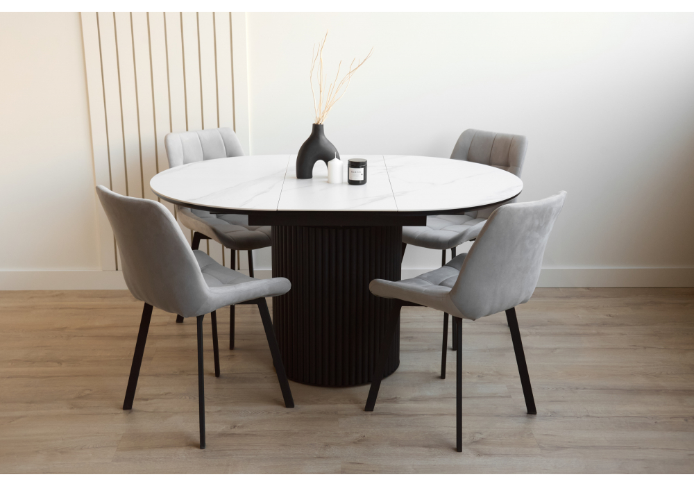 Керамический стол раскладной Woodville Стивен 100(140) snow white / черный 664694 в Рязани