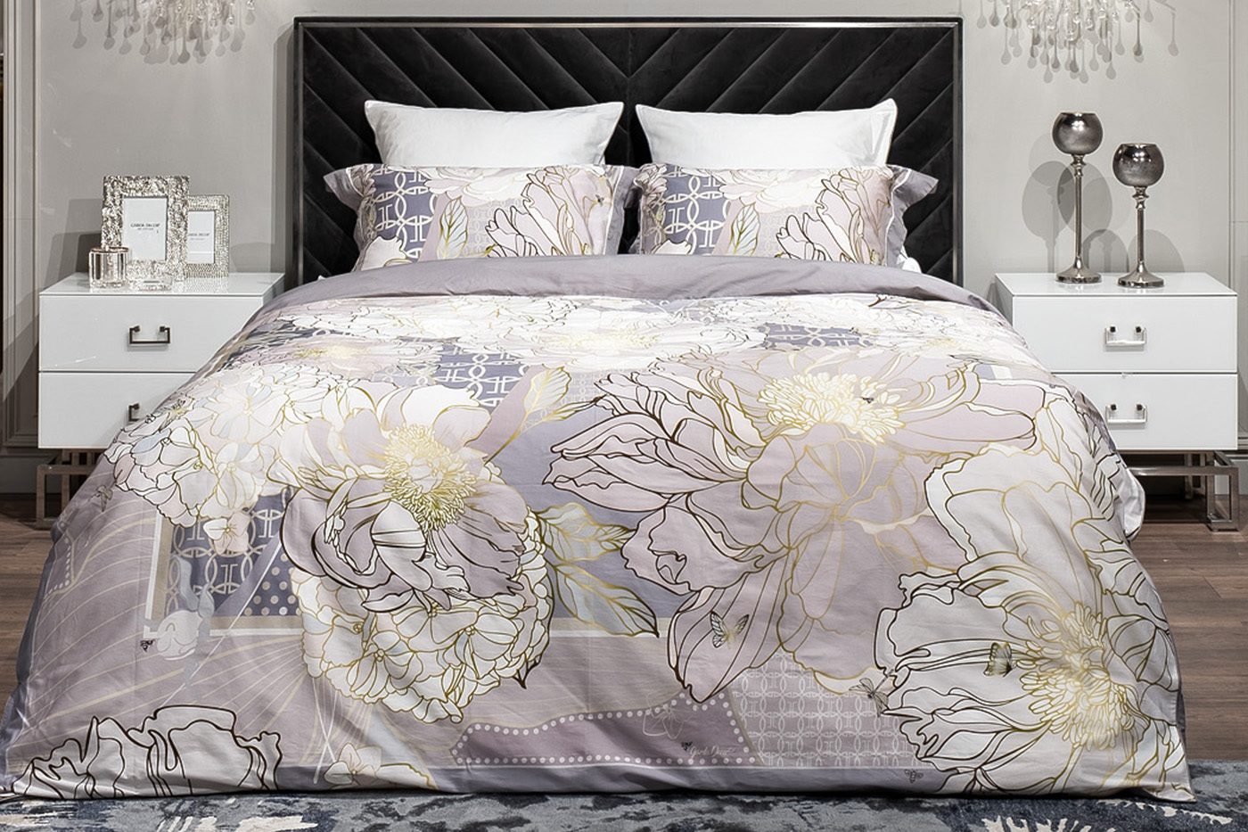 Купить "Комплект наволочек сатин принт Пионы серый 50*70 Garda Decor 130HB-00028"