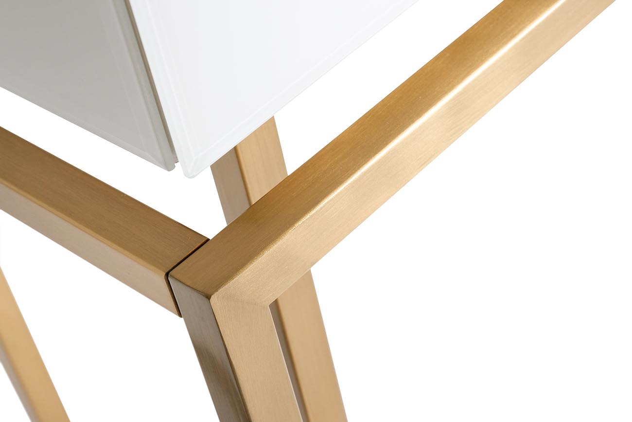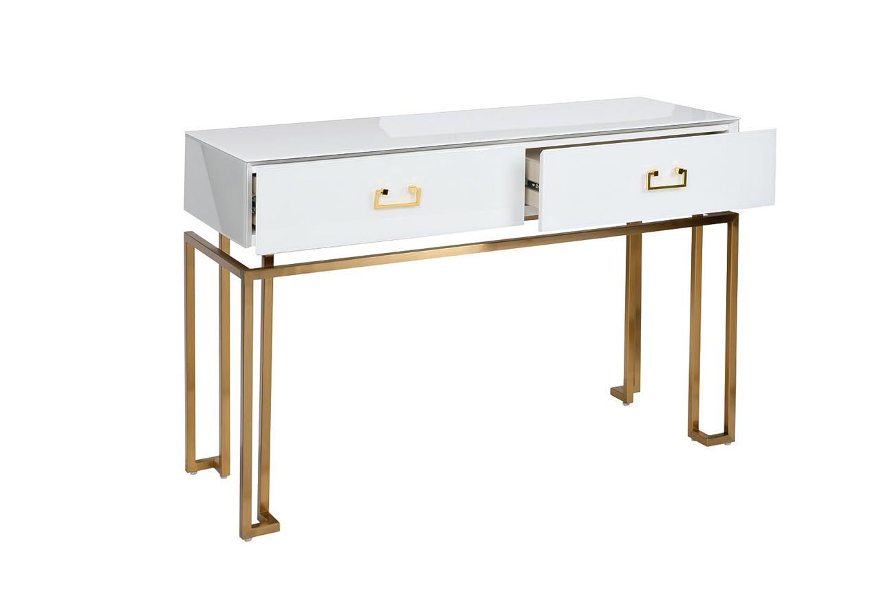 Представленная консоль с ящиками – элегантный и удобный предмет интерьера. Эта вещь, помимо предельной эстетичности, еще и весьма функциональная. Наличие ящичков позволяет использовать предмет для хранения бытовых мелочей. Это поможет организовать пространство, держать вещи в порядке. Такая белая консоль напоминает нечто среднее между изящным комодом и тумбой. Вы сможете разместить консоль из стекла в гостиной или спальне. Она прекрасно сочетается с современными стилями интерьера. Консоль составит элегантный ансамбль с тумбочками схожего дизайна арт.KFG085 и зеркалами арт.KFG047, арт.KFE1270, арт.KFG081.