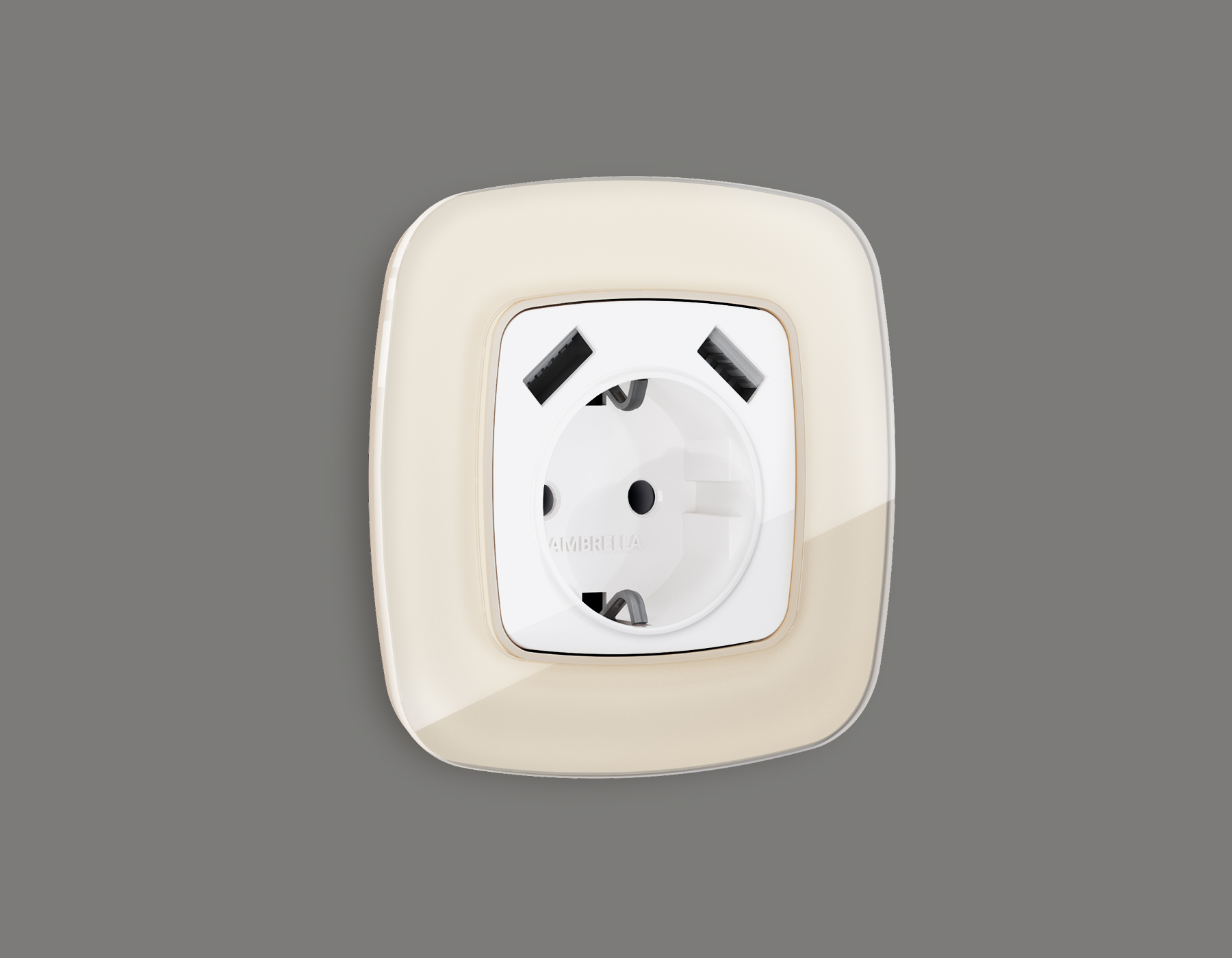 Купить "Лицевая панель для розетки с заземлением со шторками 2USB тип A+ Ambrella Volt Quant OMEGA OP1090"