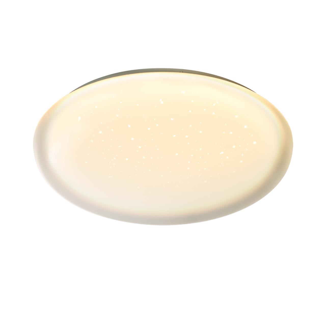Светильник 7774/ELN линии JOLLY состоит из металлического основания (базы) и пластикового рассеивателя. Материал рассеивателя - высококачественный акрил белого цвета с глянцевой поверхностью, обеспечивающий светильнику равномерное рассеивание и хорошее светопропускание. Форма плафона: круглая, декорирована прозрачными точками, придающими включенному светильнику красивый эффект "звездного мерцания" и переливания. Степень защиты IP43 позволяет использовать светильник в определенных зонах влажных помещений. В комплект входит LED модуль с линзами, мощностью 76Вт, которая соответствует лампе накаливания 740Вт. А также переключатель температуры цвета (ССT) на драйвере, с помощью которого осуществляется изменение цветовой температуры 3000/4000/6000К и переход светильника в режим теплого/белого/холодного света. Для установки необходимого режима рекомендуется использовать удлиненный тонкий предмет типа небольшой отвертки. Данную модель 7774/ELN с быстрой доставкой спешите купить в магазине 220svet.ru