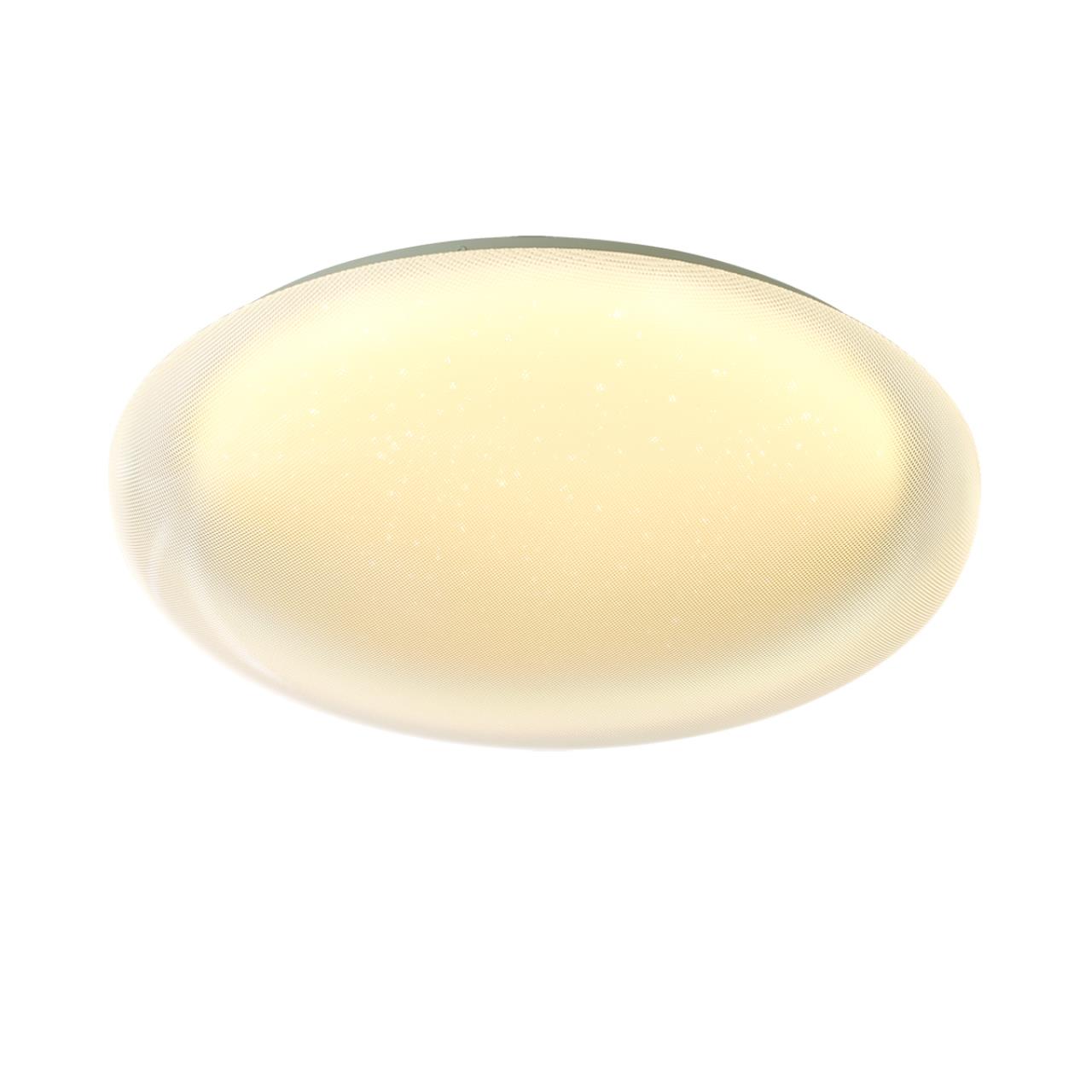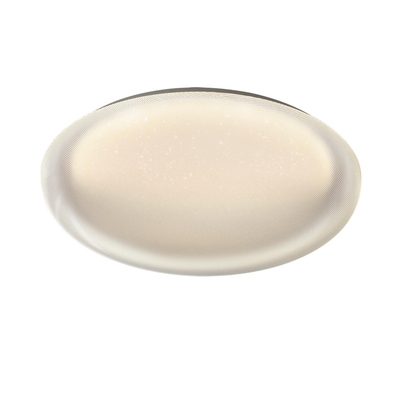 Светильник 7775/ELN линии JOLLY состоит из металлического основания (базы) и пластикового рассеивателя. Материал рассеивателя - высококачественный акрил белого цвета с глянцевой поверхностью, обеспечивающий светильнику равномерное рассеивание и хорошее светопропускание. Форма плафона: круглая, декорирована прозрачными точками, придающими включенному светильнику красивый эффект "звездного мерцания" и переливания. Степень защиты IP43 позволяет использовать светильник в определенных зонах влажных помещений. В комплект входит LED модуль с линзами, мощностью 76Вт, которая соответствует лампе накаливания 740Вт. А также переключатель температуры цвета (ССT) на драйвере, с помощью которого осуществляется изменение цветовой температуры 3000/4000/6000К и переход светильника в режим теплого/белого/холодного света. Для установки необходимого режима рекомендуется использовать удлиненный тонкий предмет типа небольшой отвертки. Данную модель 7775/ELN с быстрой доставкой спешите купить в магазине 220svet.ru