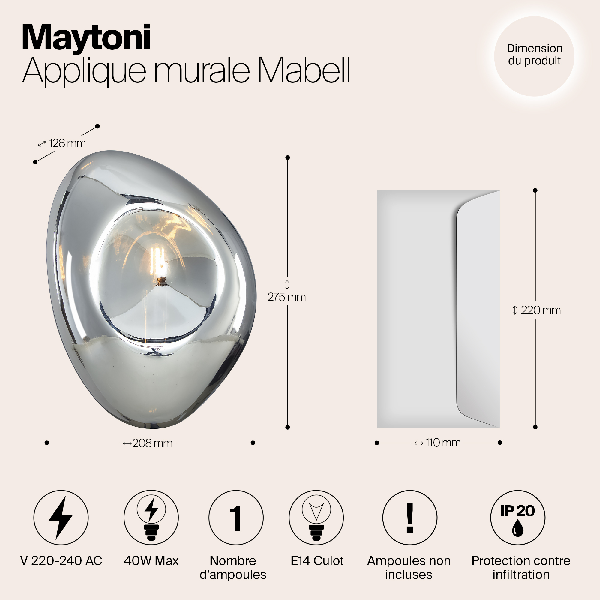 Настенный светильник Maytoni Mabell MOD306WL-01CH в Рязани