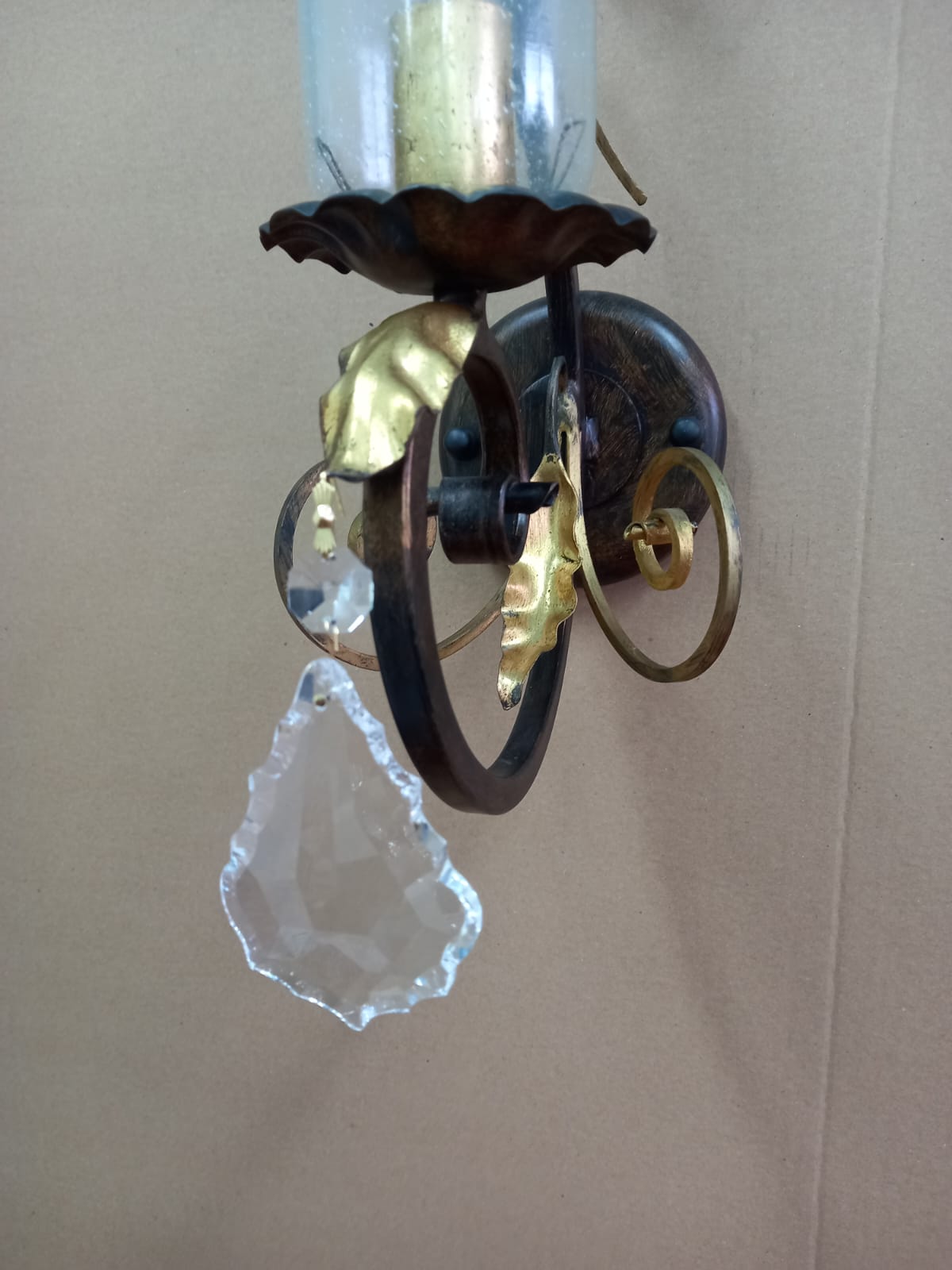 Настенный светильник MM Lampadari 5840/A1_V1682 на металлической кованной арматуре бронзового цвета. Плафон из прозрачного муранского стекла.