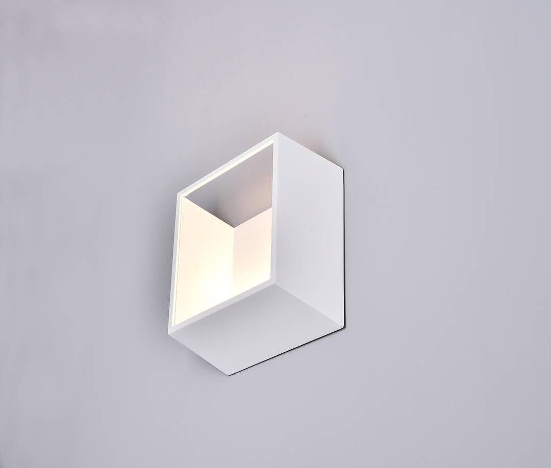 Белый настенный светодиодный светильник в виде объемного куба с открытой лицевой стороной.