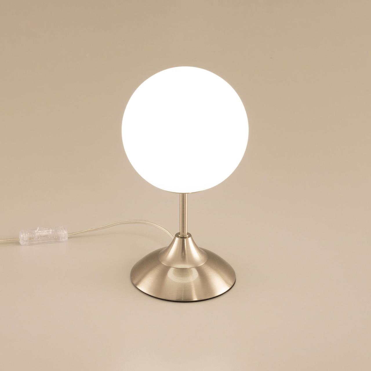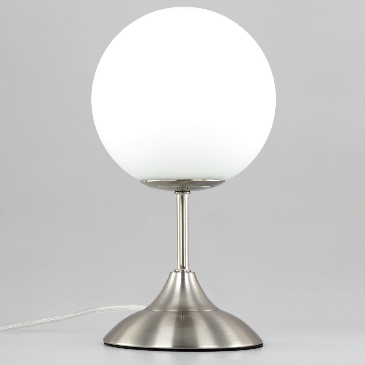 Настольная лампа CL102814 от производителя Citilux относится к серии Томми выполнена в современном стиле. Корпус металлический, цвет матовый хром. Плафон в форме шара, изготовлен из матового стекла. В изделии используется 1 лампа с цоколем Е14, форма колбы «свеча», максимальная мощность для ламп накаливания 40 Вт (в комплект не входит, приобретается отдельно). Светодиодные лампы можно устанавливать более яркие. Высота настольного светильника 28см, диаметр 15см. Сетевой провод прозрачный, длиной 1,7 метра. Выключатель расположен на проводе, на расстоянии 20 см от основания , страна бренда Дания . Купить модель CL102814 спешите в интернет магазине 220svet.ru