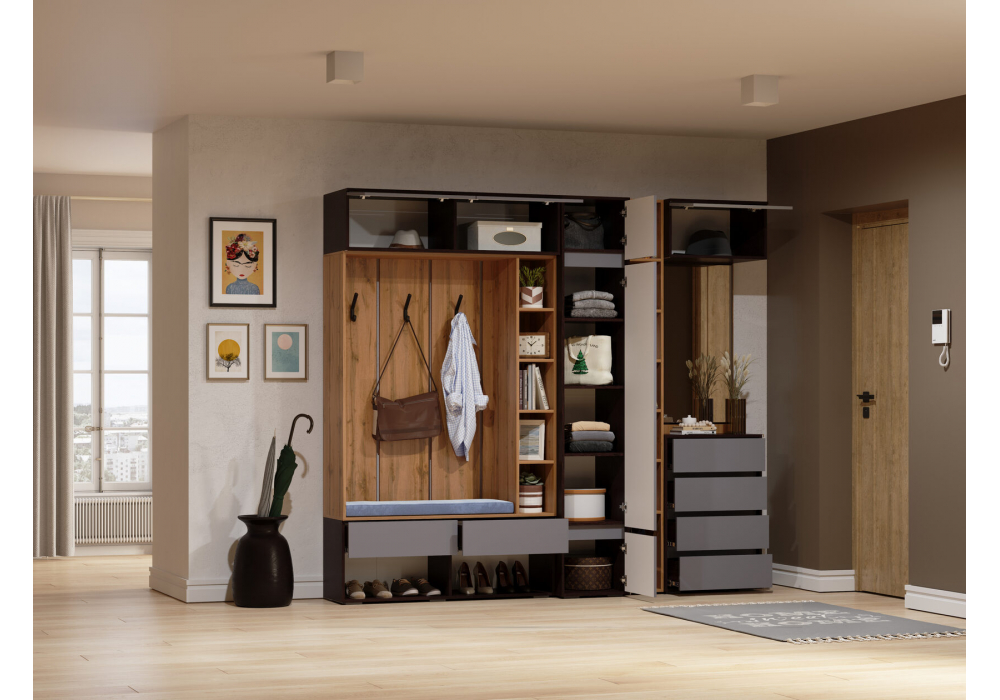 Навесной шкаф Woodville Роут малый венге / графит софт 593734 в Рязани