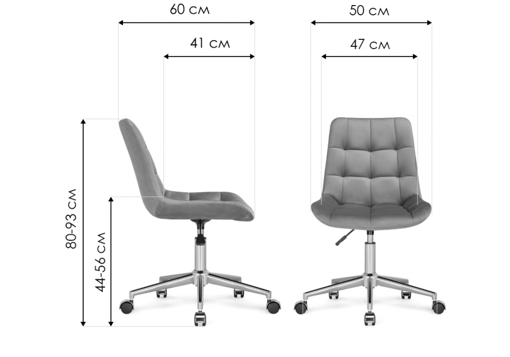 Высота спинки: 38 см. Материал каркаса - металл; Материал сиденья - велюр; Материал обивки - велюр; Цвет ножек - черный; Ширина - 50; Глубина - 60; Высота - 80; Ширина сиденья - 47; Глубина сиденья - 41; Высота сиденья - 44; Высота спинки - 39; Высота максимальная - 93;