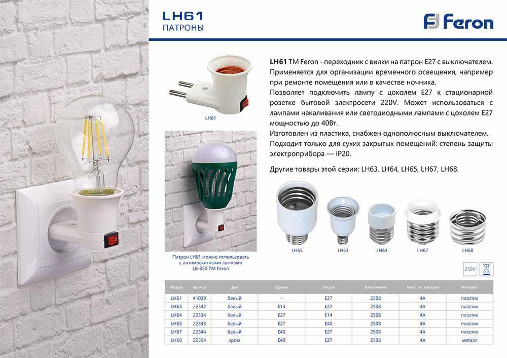 Купить "Патрон-переходник Feron LH61 41039"