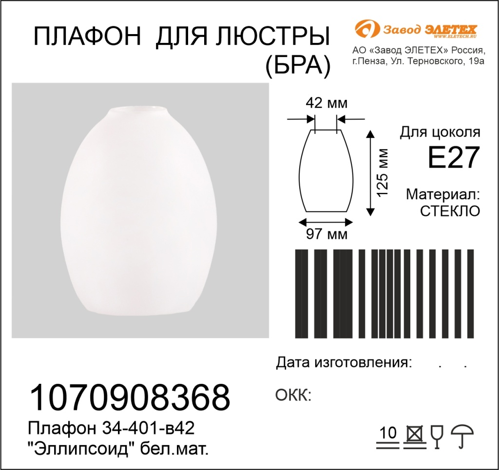 Купить "Плафон Элетех эллипсоид 1070908368"