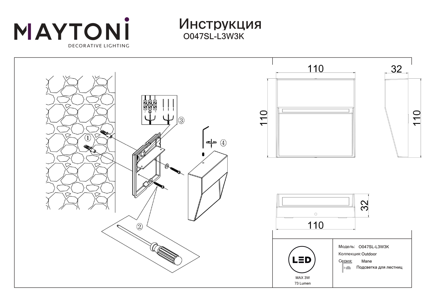 Подсветка для лестниц Maytoni Mane O047SL-L3W3K в Рязани