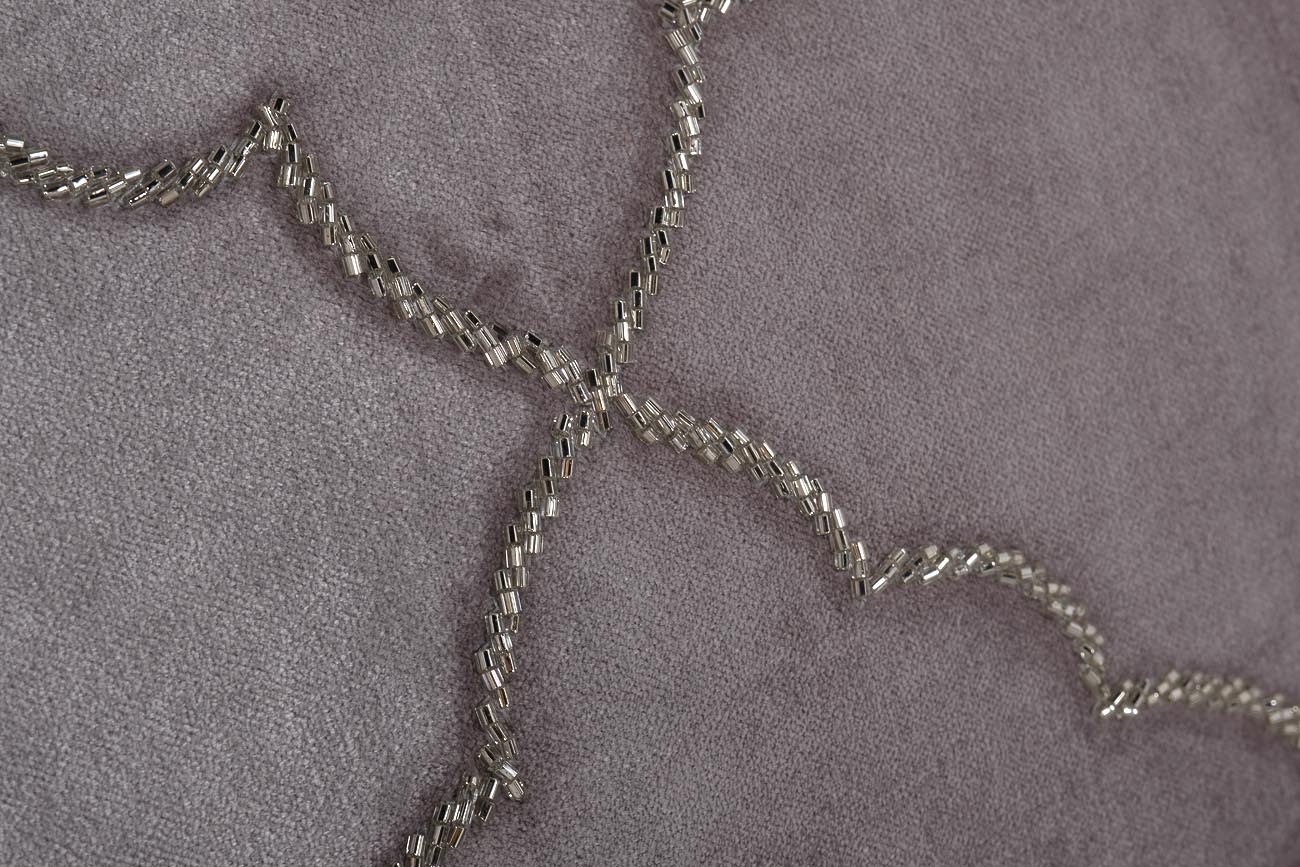 Декоративная подушка с бисером – это изысканная деталь, подобная милой шляпке в образе настоящей леди, делает образ помещения более целостным и привлекательным. Благодаря высокому качеству материалов эта подушка не только красива, но и функциональна в использовании. Оригинальность модели «квадро» – в орнаменте из необычных четырехугольников. Они напоминают редкие цветы благодаря плавным линиям, комбинации острых и закругленных углов.