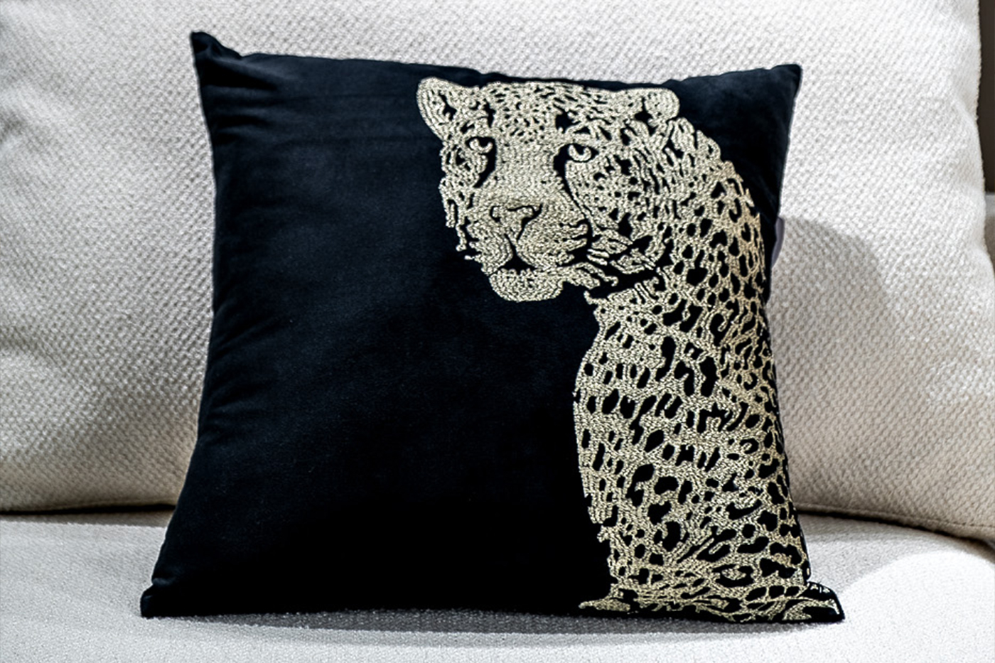 Черная декоративная подушка аристократично впишется в богемный интерьер гостиной или спальни. Анималистичный принт – один из фаворитов стиля арт-деко. Модный «леопард» достаточно просто приручить и вписать в современный интерьер. «Зверь», умело вышитый на иссиня-черном фоне, украсит интерьер дома, выгодно подчеркнет стиль и красоту мебели. Такой контраст в виде декоративной подушки с вышивкой придаст обстановке объемности и фактурности.