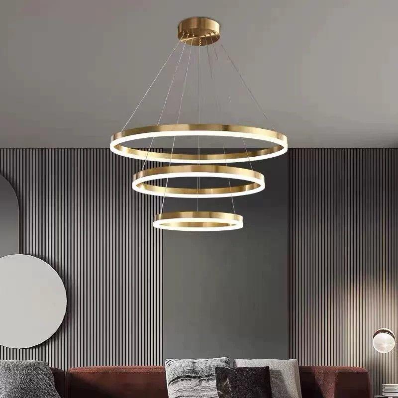 Подвесная люстра в стиле модерн — это уникальное произведение искусства, выполненное в элегантных золотых оттенках, которое привносит современный шарм в любой интерьер. Люстра имеет изящные размеры с высотой 1200 мм и диаметрами 400, 600 и 800 мм, что позволяет ей гармонично вписаться даже в самое просторное помещение, освещая площадь от 15 до 20 квадратных метров. Три светодиодные лампы обеспечивают ровное и мягкое освещение, создавая теплую атмосферу.
