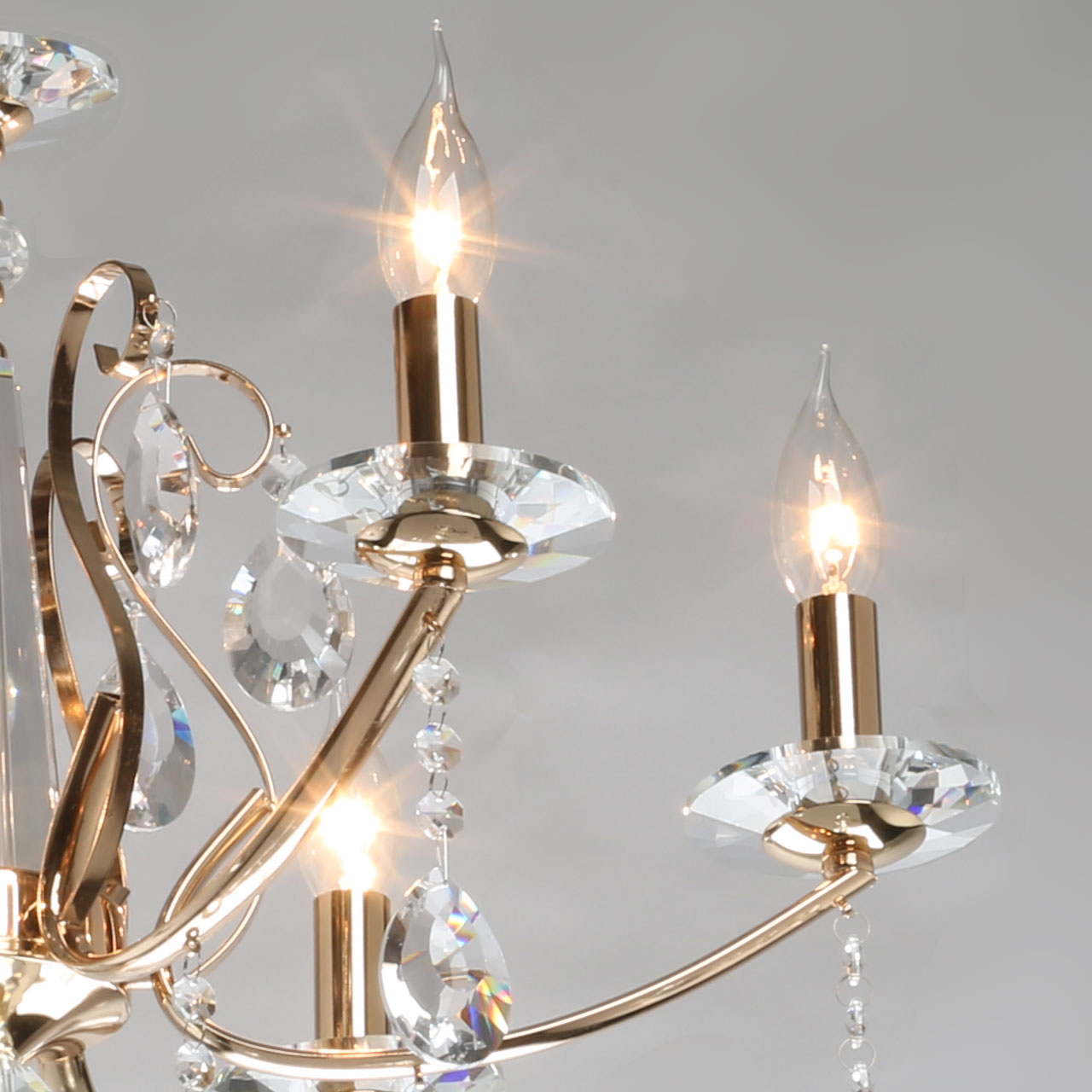 Придать модели воздушности помогает регулируемый подвес, который позволяет адаптировать люстру к высоте потолков. Чтобы украсить светильник и сделать его еще более декоративным, стоит приобрести лампы формы "свеча" или "свеча на ветру".