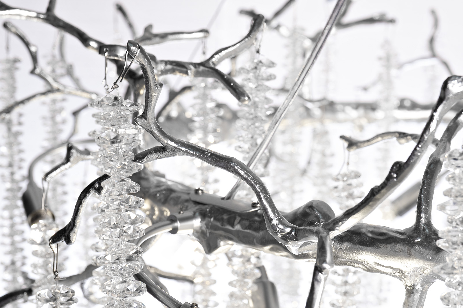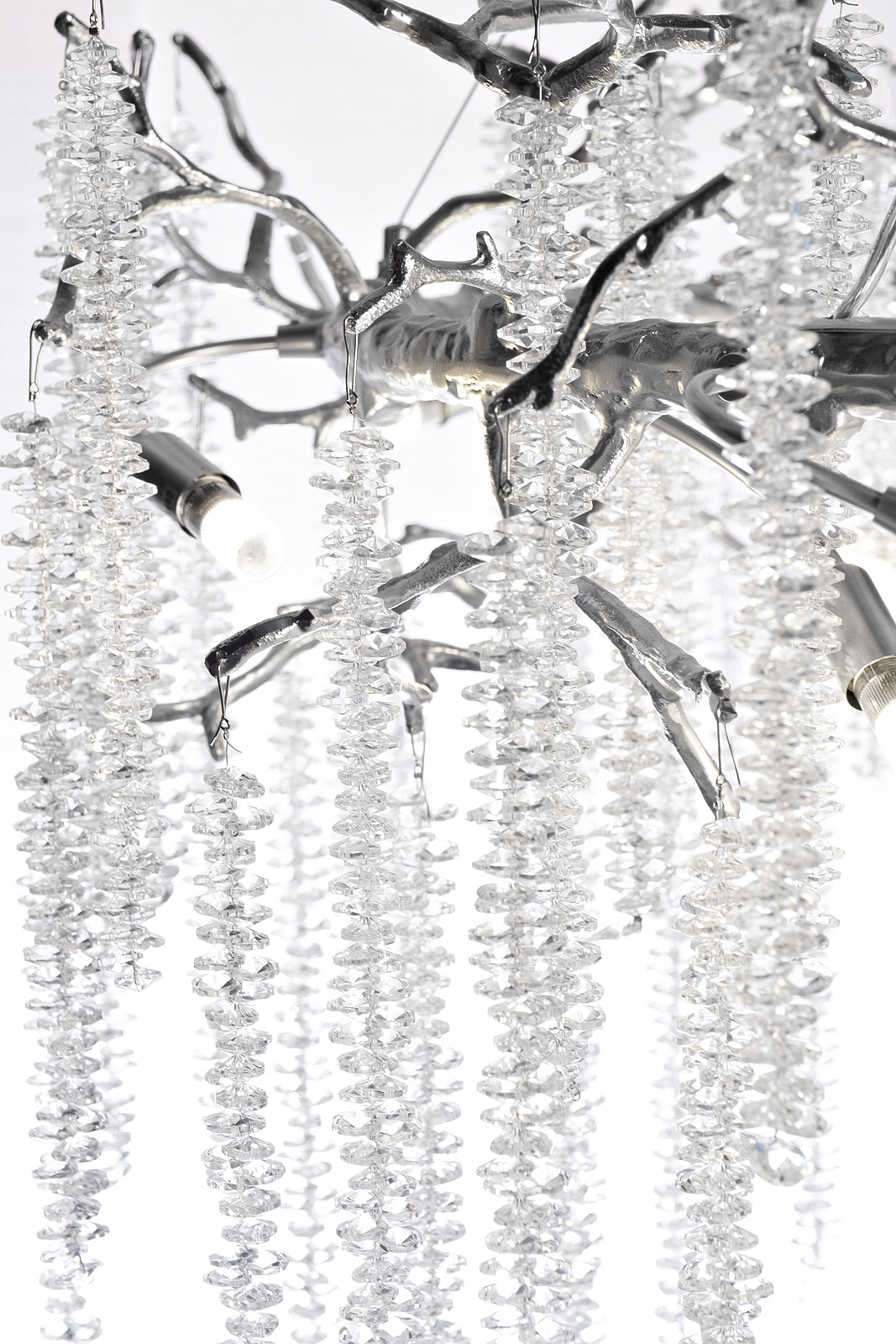 Красивая подвесная люстра с максимальным градусом декоративности. Воплощение изящества, аристократизма и современных дизайнерских трендов. Это полноценный арт-объект, который сразу обращает на себя внимание благодаря внушительным размерам и оригинальному дизайну. Люстра со стеклянными подвесами идеально впишется в интерьер гостиной, холла, столовой. Сочетание металлического каркаса в виде веток и ниспадающих подвесок из крохотных прозрачных капель делает этот потолочный светильник по-настоящему роскошным украшением пространства. Рекомендуемая площадь освещения 24-30 м2.