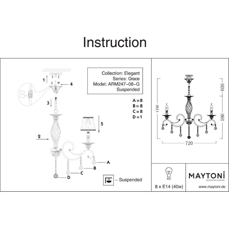 Купить "Подвесная люстра Maytoni Grace ARM247-08-G"