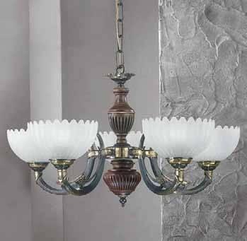 Подвесная люстра Reccagni Angelo L 3610/5 Итальянского производсва – отличный выбор для Вас. Этот светильник Классического стиля хорошо подойдет Для гостиной и придаст помещению мягкий и приятный свет. Плафоны белые из стекла. Арматура бронза из металла. Кол-во ламп - 5шт. Общая мощность 300W