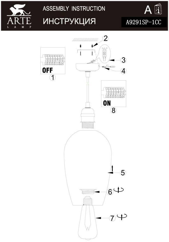 Подвесной светильник Arte Lamp A9291SP-1CC в Рязани