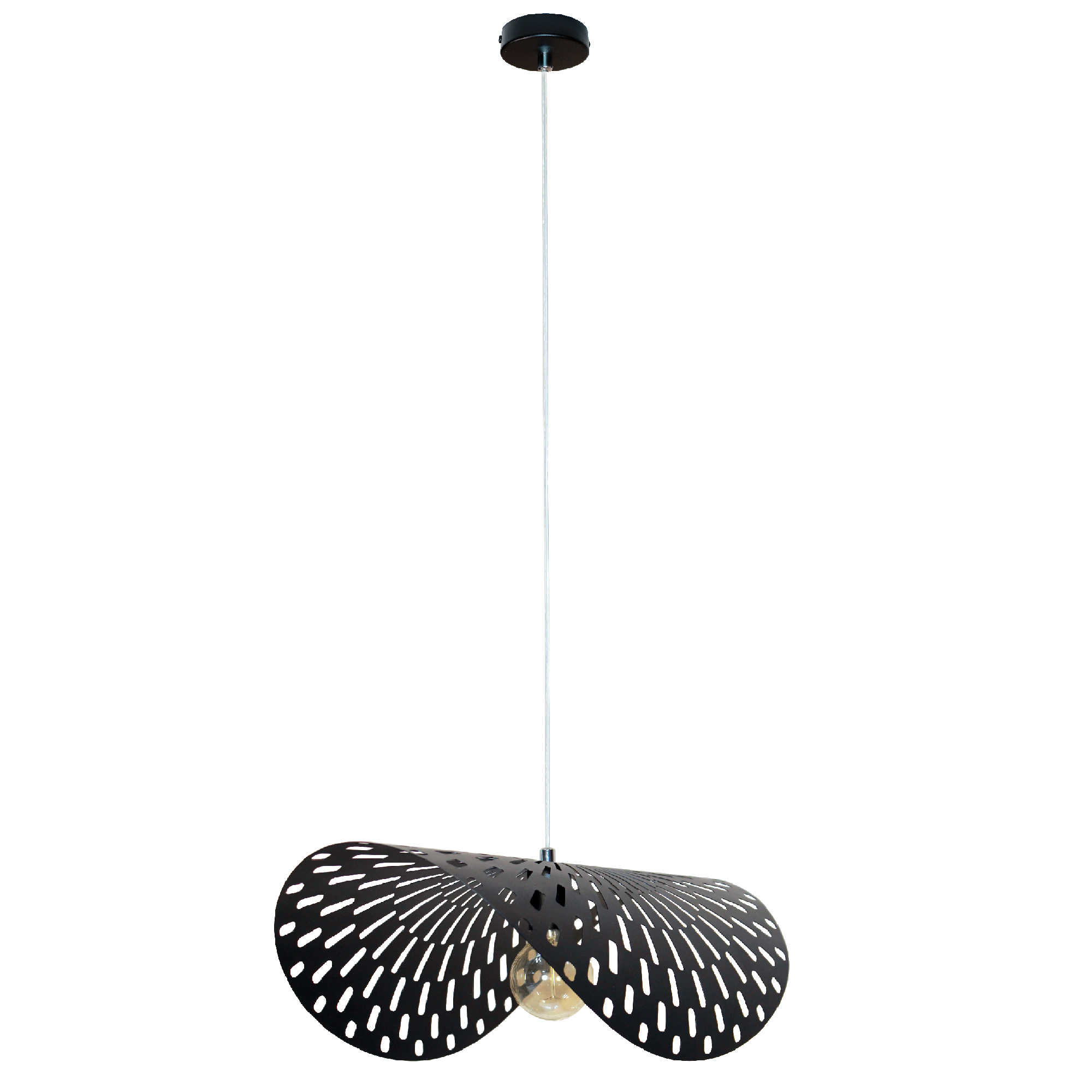 Подвесной светильник из серии "Наоми" отлично подойдет для комнаты, оформленной в современном стиле, предназначен для декоративного освещения помещения до 5 м2. Производитель рекомендует использовать в светильнике лампы накаливания с цоколем E27 и мощностью не более 60W, а также светодиодные или энергосберегающие лампы. Стильный современный дизайн светильника придаст вашей комнате неповторимый и изысканный вид. Стальной корпус представлен в бархатном черном цвете. Рассеиватель изготовлен с помощью лазера, неповторимый рисунок которого создает игру света и тени в комнате (при использовании лампы накаливания). Для создания максимального декоративного эффекта оптимально использовать лампы Эдисона шарообразной формы большого диаметра. Применение RGB светодиодной лампы позволит создать в помещении уникальную цветовую атмосферу под любое настроение. Лампа в комплект не входит. Габаритный размер изделия - 550*351*1650 мм. Данную модель 1005404814 можно купить в интернет магазине 220svet.ru