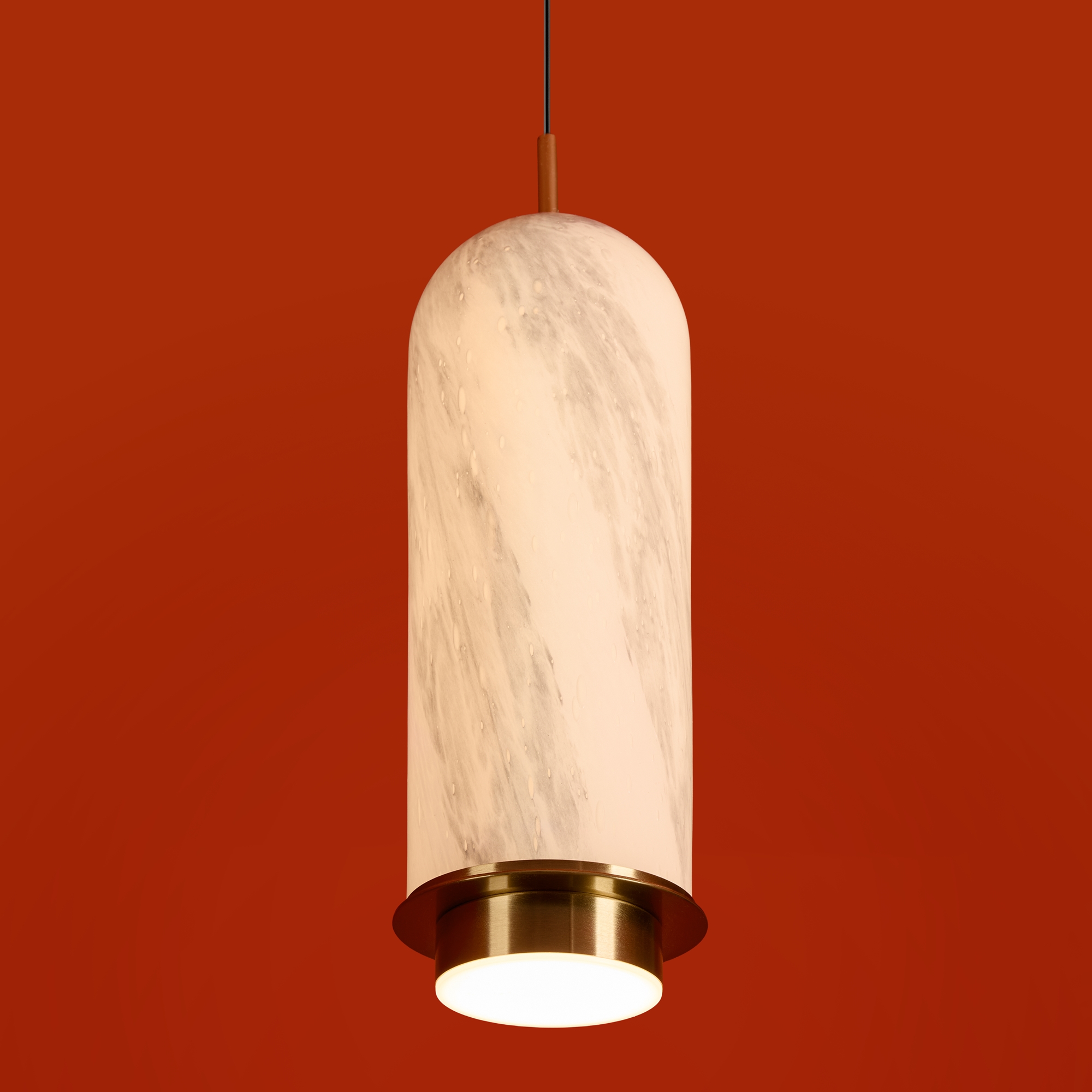 Арматура — металл. Стеклянные плафоны с имитацией мрамора и полосками в ретро-стиле. Интегрированный LED источник света 2700К, угол рассеивания 360°. Высота регулируется.
