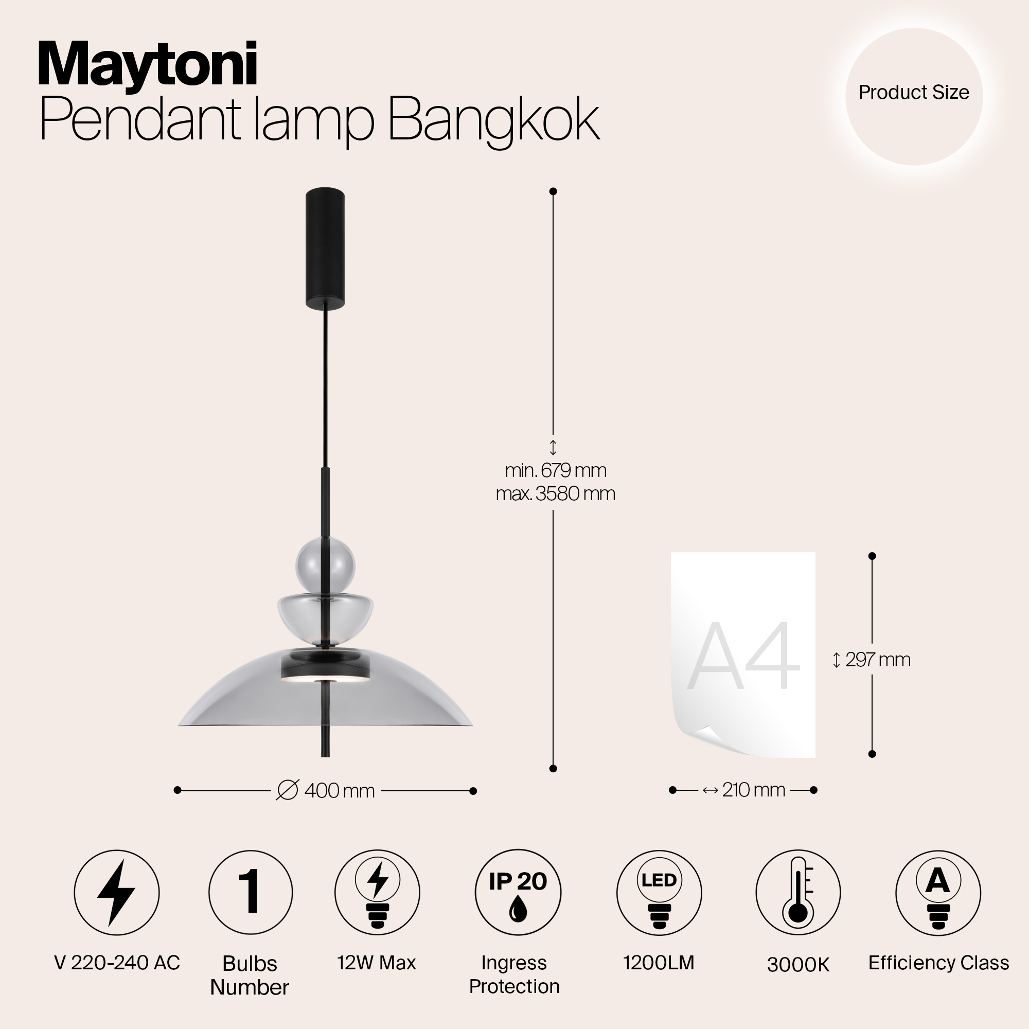 - Высота плафона (абажура): 238