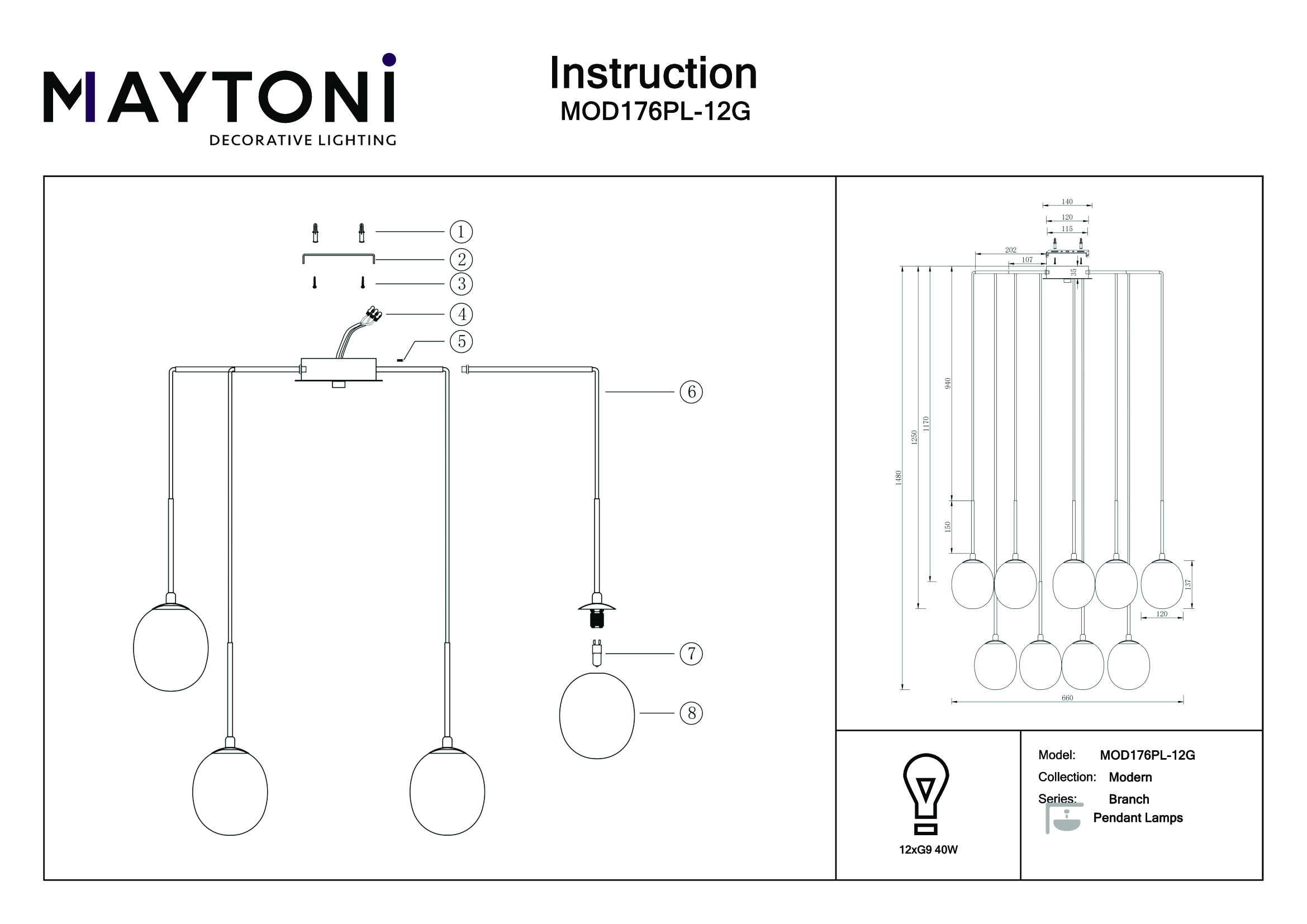 Купить "Подвесной светильник Maytoni Branch MOD176PL-12G"