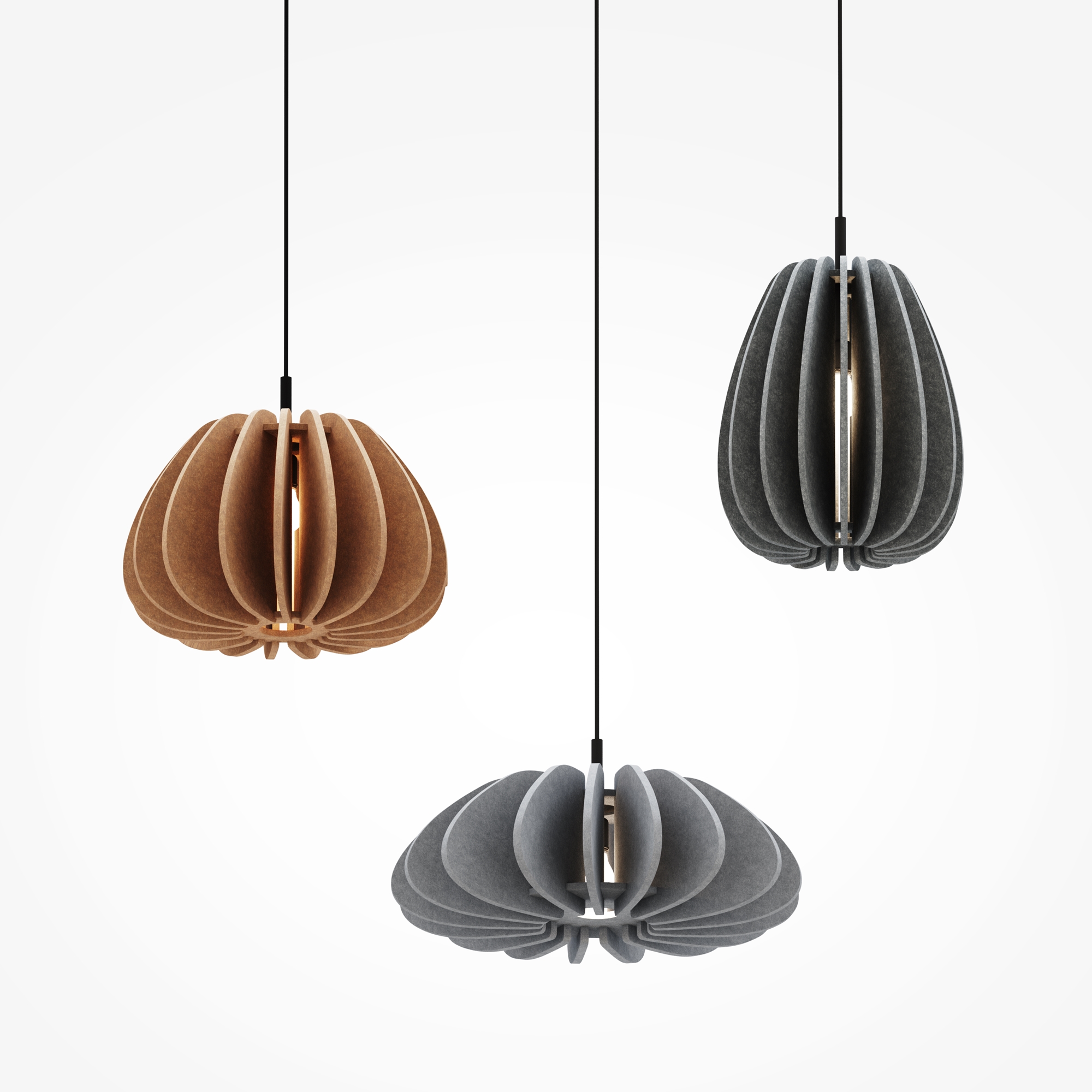 Цвет арматуры — чёрный. Материал арматуры — металл. Вариативность композиций и цветовых решений. Абажуры из фетра с эффектом шумоизоляции. Светильники-трансформеры с поворотным абажуром. Регулируемый провод - 3 метра, подходят для помещений с высокими потолками. Доступны в 4 цветах и 3 формах, идеально сочетающихся между собой. Подходят для создания оригинальных композиций.