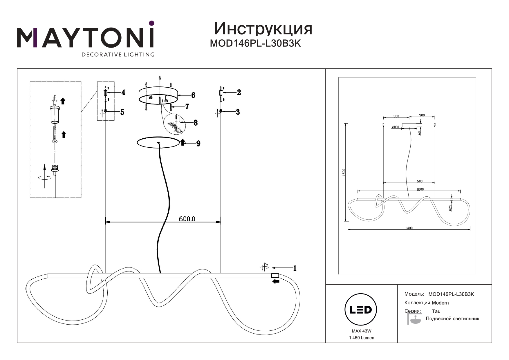 Данную модель MOD146PL-L30B3K с быстрой доставкой спешите купить по цене 37 490 ₽ в магазине 220svet.ru