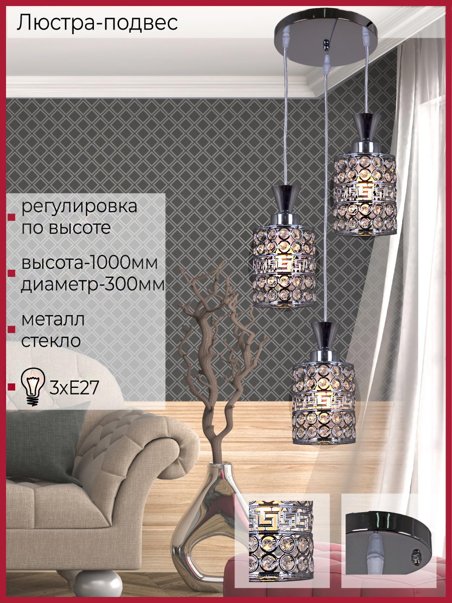 - Цвет плафонов: Прозрачный, Хром
