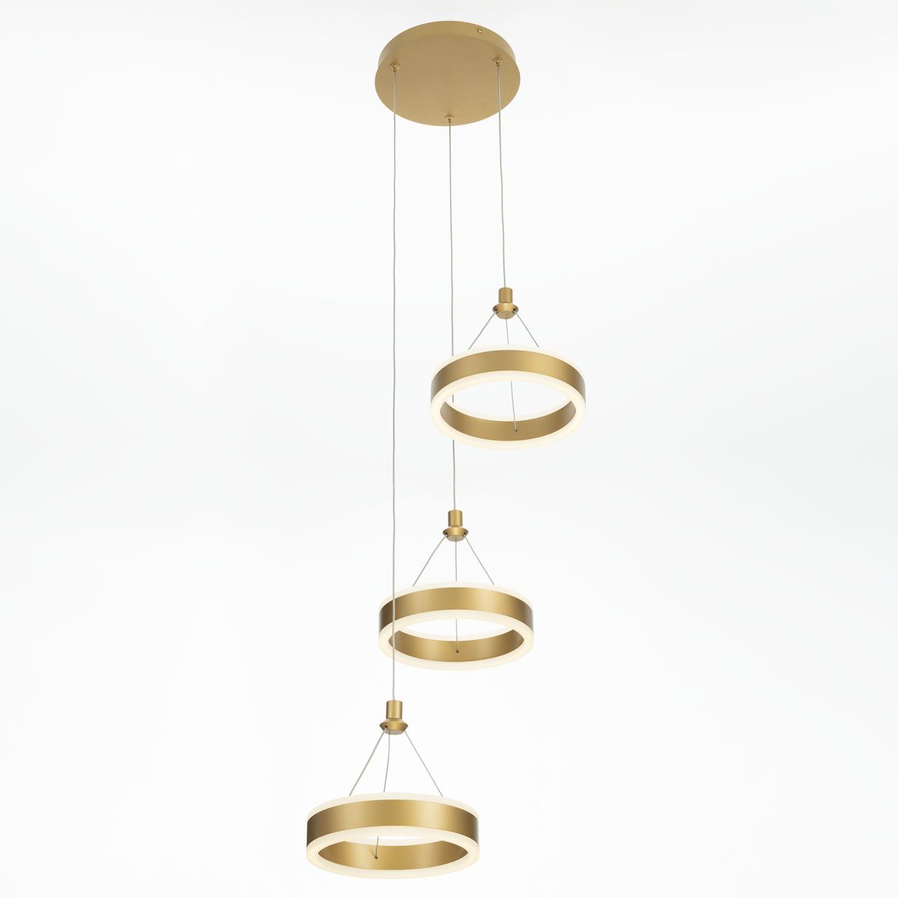 Светодиодный каскадный светильник CL719032 от производителя Citilux принадлежит серии Дуэт выполнен в современном стиле. Корпус металлический, цвет благородное золото. Светильник состоит из круглого основания и трёх подвесных колец. Кольцо - светодиодный модуль, корпус изготовлен из алюминиевого профиля, рассеиватель из оптического полимера. Наличие источников света с двух сторон профиля позволяет равномерно осветить всё помещение. Изделие оснащено встроенным ступенчатым диммером, три уровня яркости – 100-40-15%, управляется обычным настенным выключателем. Мощность 60Вт, цветовая температура 4000К - нейтральный белый свет без мерцания и пульсаций. Крепление подходит для всех видов потолков, в том числе натяжных, тип крепления – планка , страна бренда Дания.Купить модель CL719032 спешите в интернет-магазине 220svet.