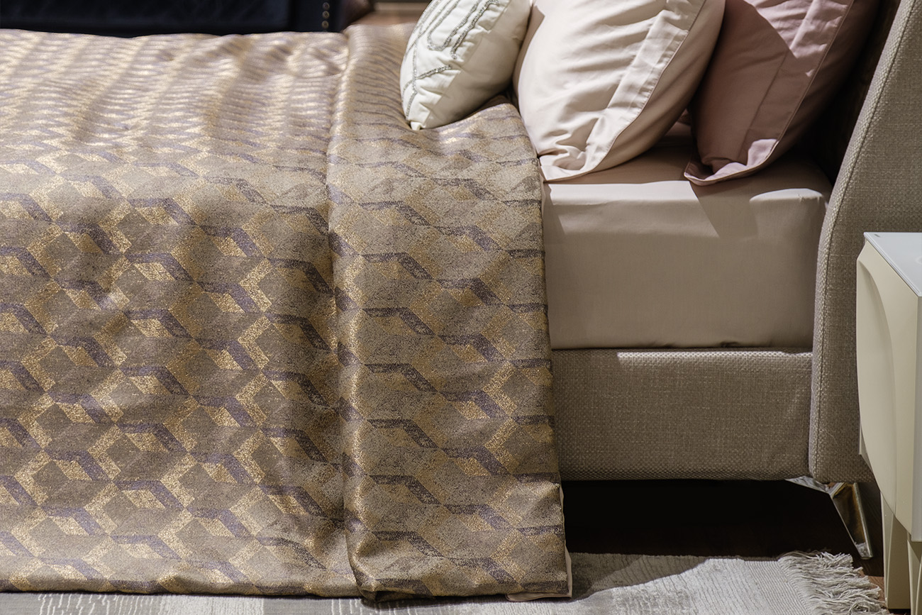 Жаккардовое покрывало с интересным геометрическим рисунком. Красота геометрии заключаются в ее универсальности и простоте. Ткань с таким рисунком подходит для интерьеров как в классических, так и в современных направлениях, и служит ярким акцентом, притягивающим взгляд. Изделие представлено в золотом цвете. УХОД: Деликатная машинная стирка при температуре не выше 30 градусов. Отбеливание запрещено. Гладить при средней температуре до 150 градусов. Разрешена сухая химчистка. Разрешена низкотемпературная машинная сушка.