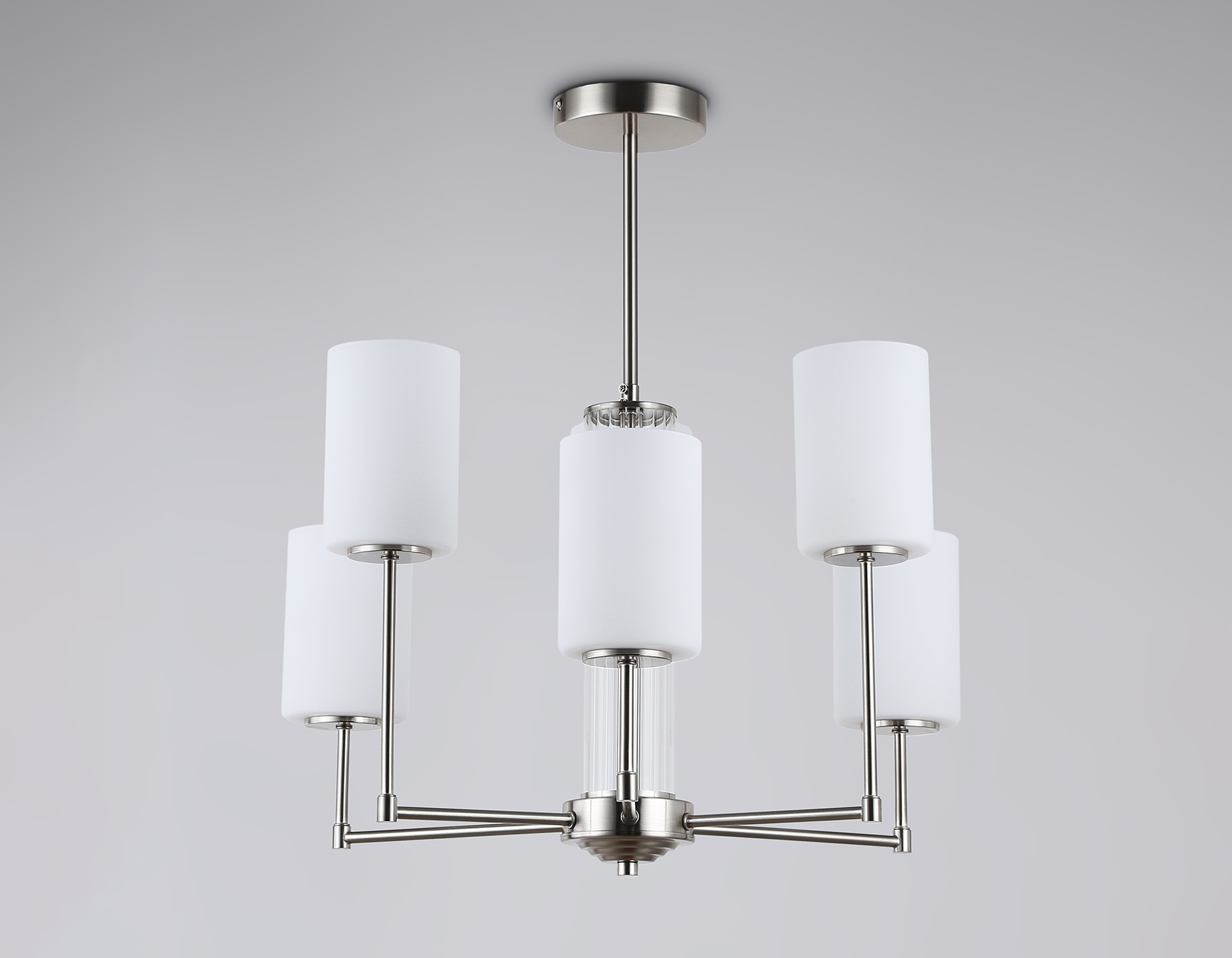 Подвесная люстра из коллекции HIGH LIGHT. Модель LH56211 представлена в стиле неоклассика. Люстра выполнена из металлического каркаса цвета никель и стеклянных матовых плафонов. Для данной модели подойдут лампы с цоколем Е27. Люстра будет прекрасным дополнением в любом помещении.